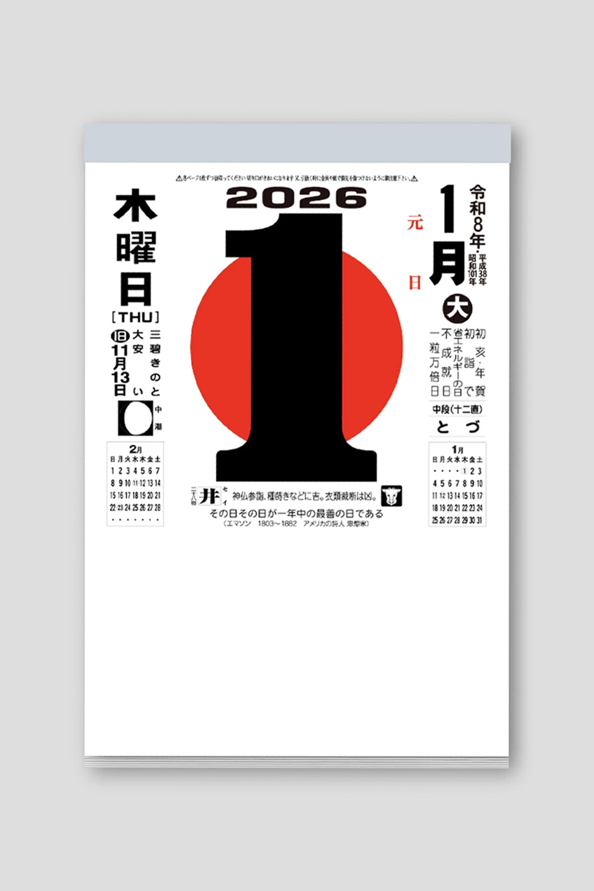 Made from traditional junpakushi paper (some compare it to bible paper), this 2026 calendar features a sturdy steel binding and purple hanging cord. When removing the sheet for the next day, just give the top sheet a firm downward yank.