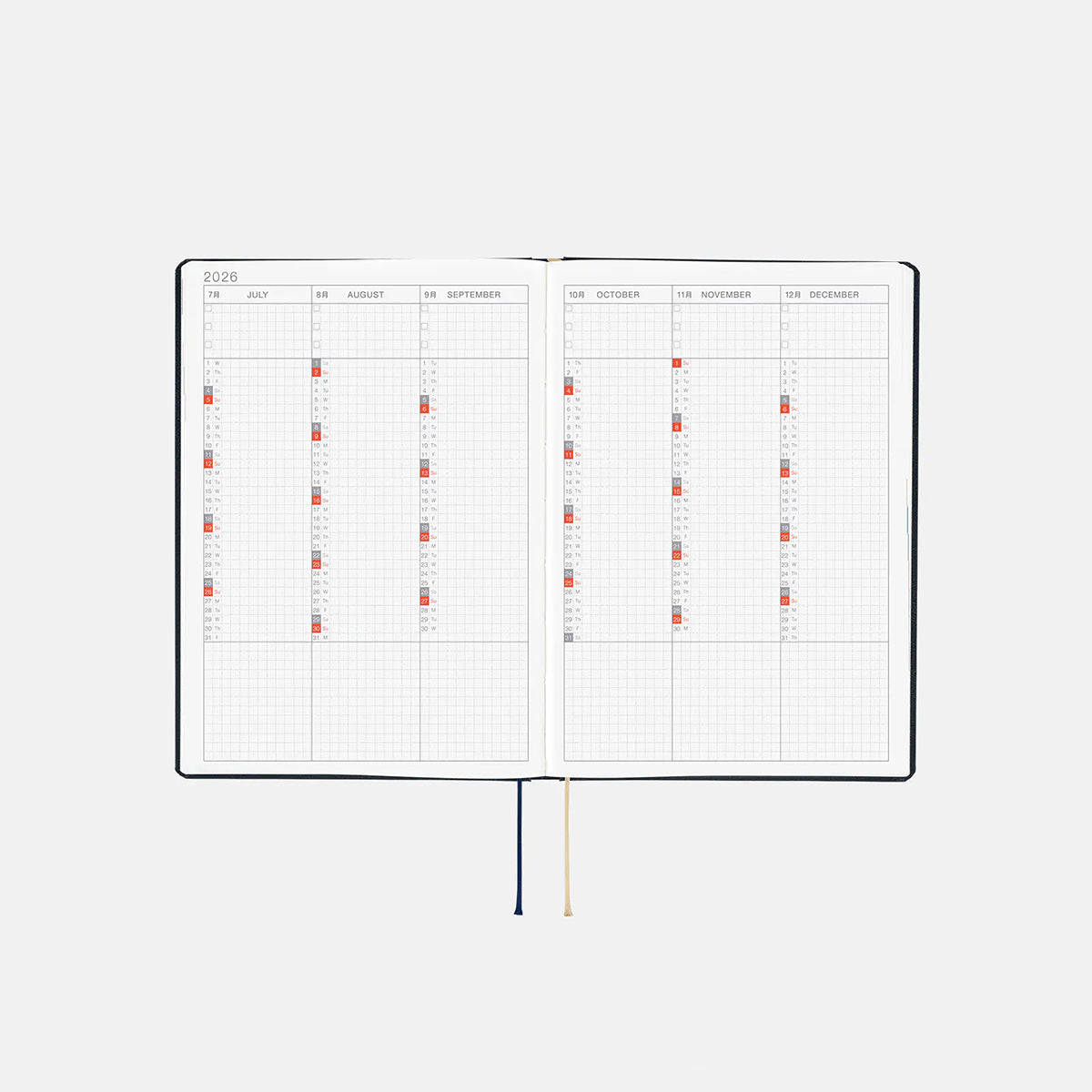 The design is based on the forward-slash symbol ( / ) used when writing dates. The cloth of the cover has a matte texture that feels nice in your hands and is resistant to grime, as well as wear and tear.