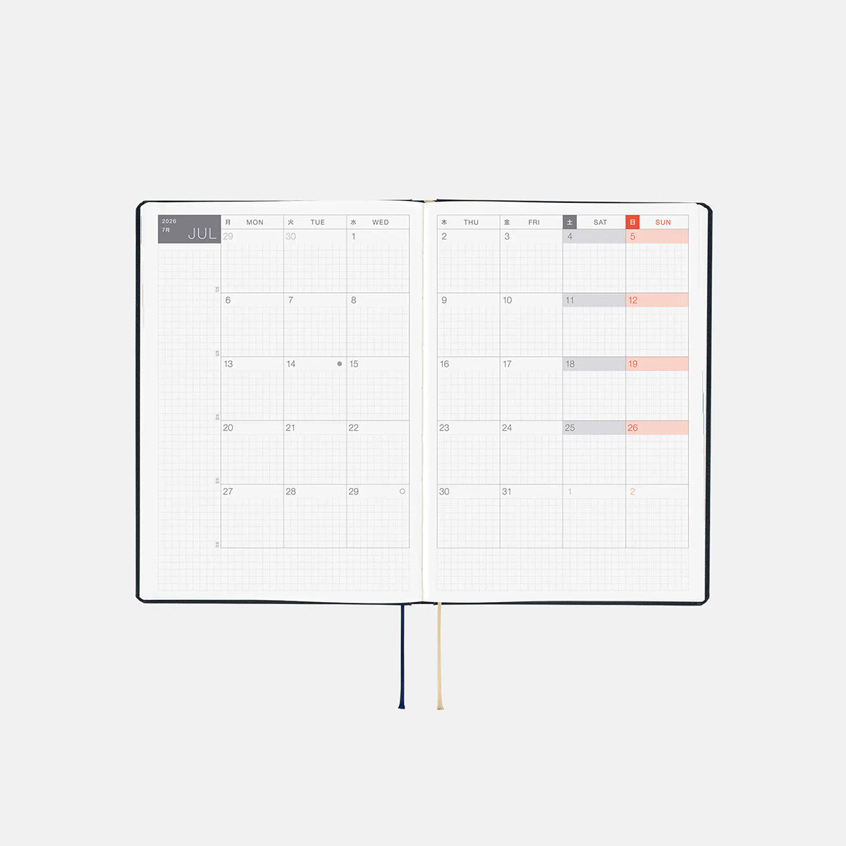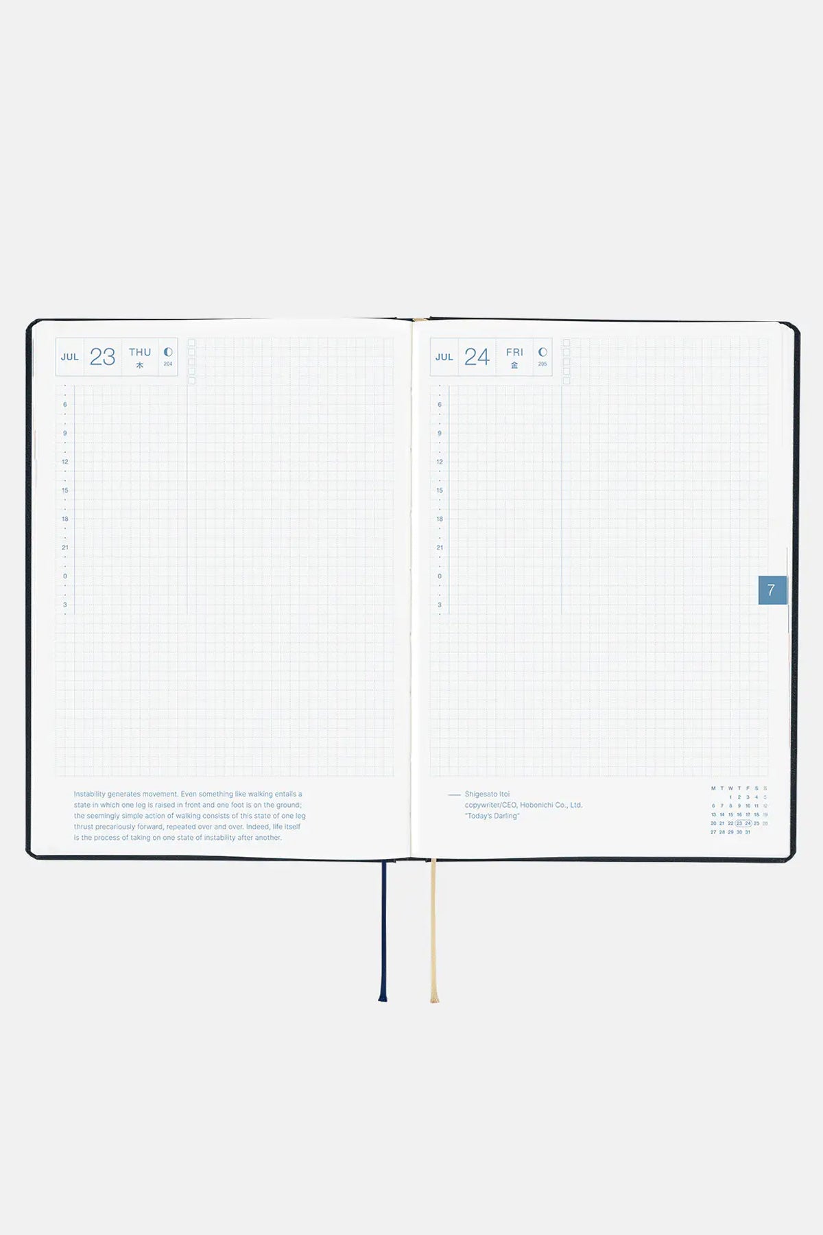 The bookbinding on the HON has thread-stitch binding similar to the Hobonichi Techo books, so it opens 180 degrees onto the table. It stays flat even if you don’t hold it down. The book uses thin and light yet durable Tomoe River paper. It's characterized by its ability to hold ink well and provide a smooth writing experience.