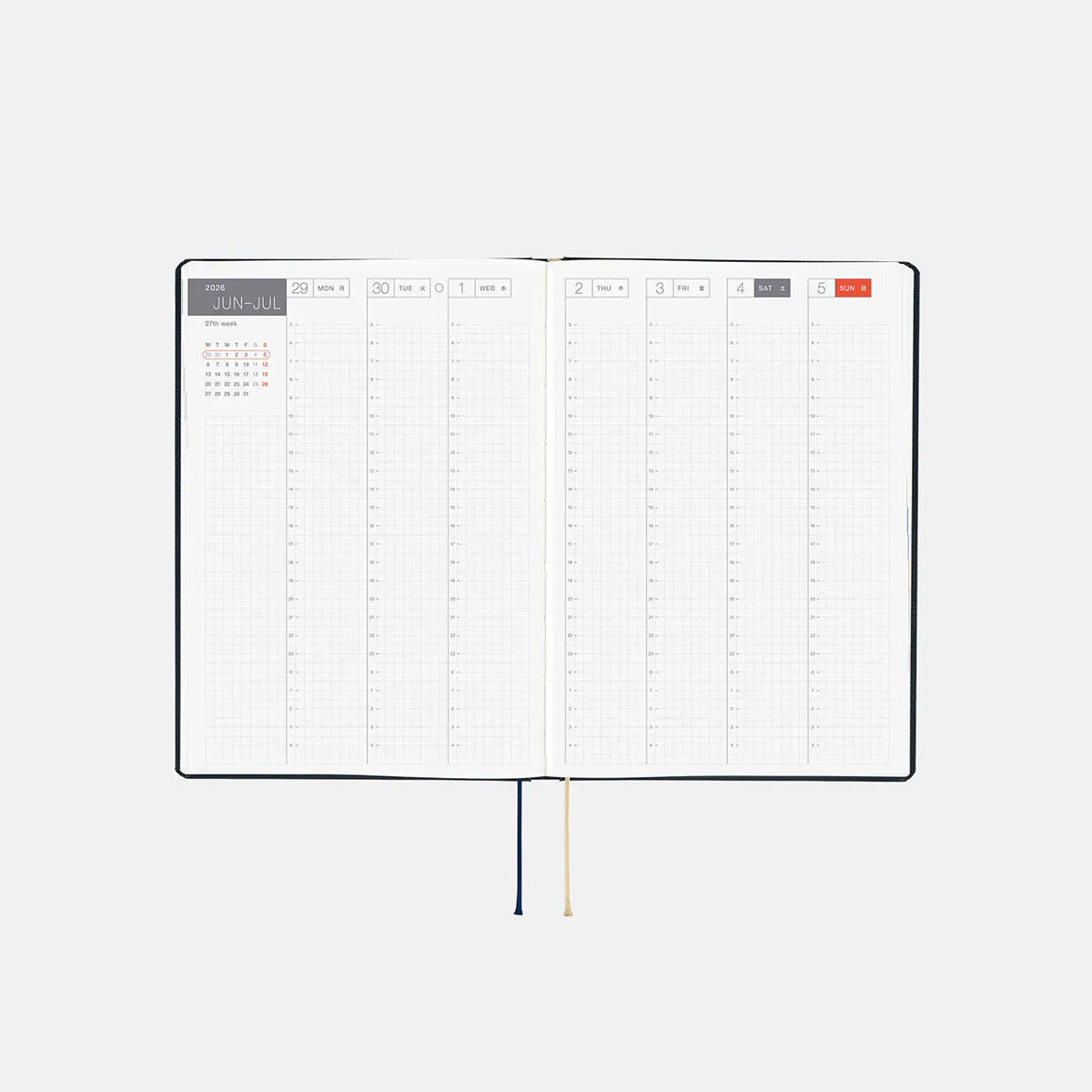 The HON A5 size includes weekly pages which track a week in each two-page spread for easy planning and contain a handy time schedule.