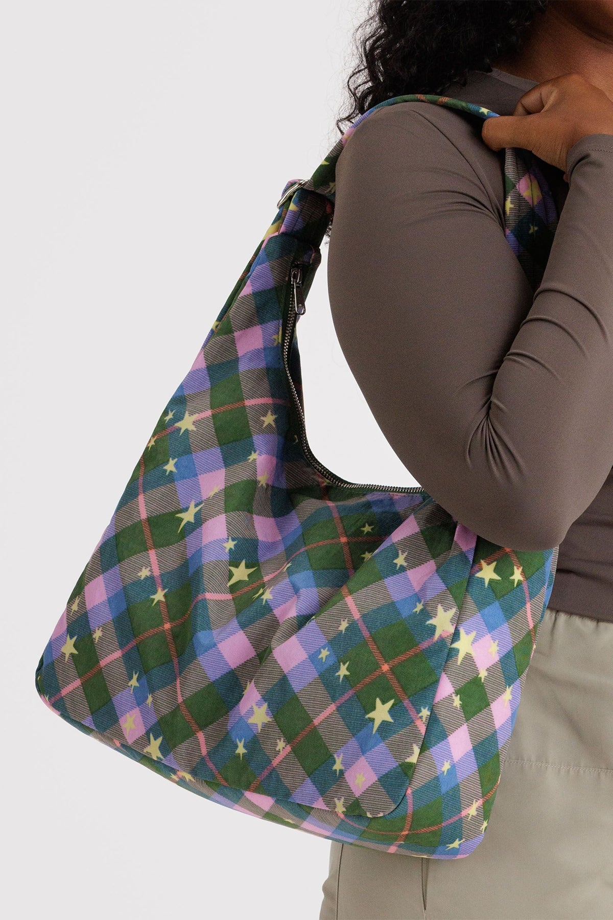 BAGGU Nylon Shoulder Bag Green Star Plaid