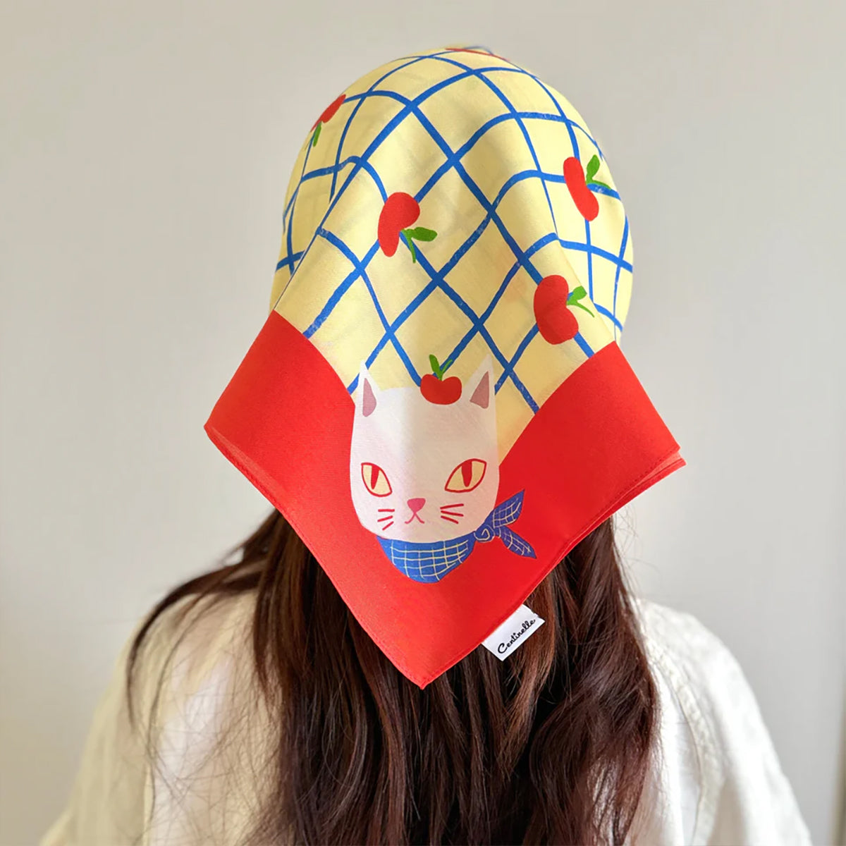 This Apple Cat Cotton Silk Bandana from Centinelle is made of a luxurious cotton and silk twill blend with a precise machine-stitched hem.