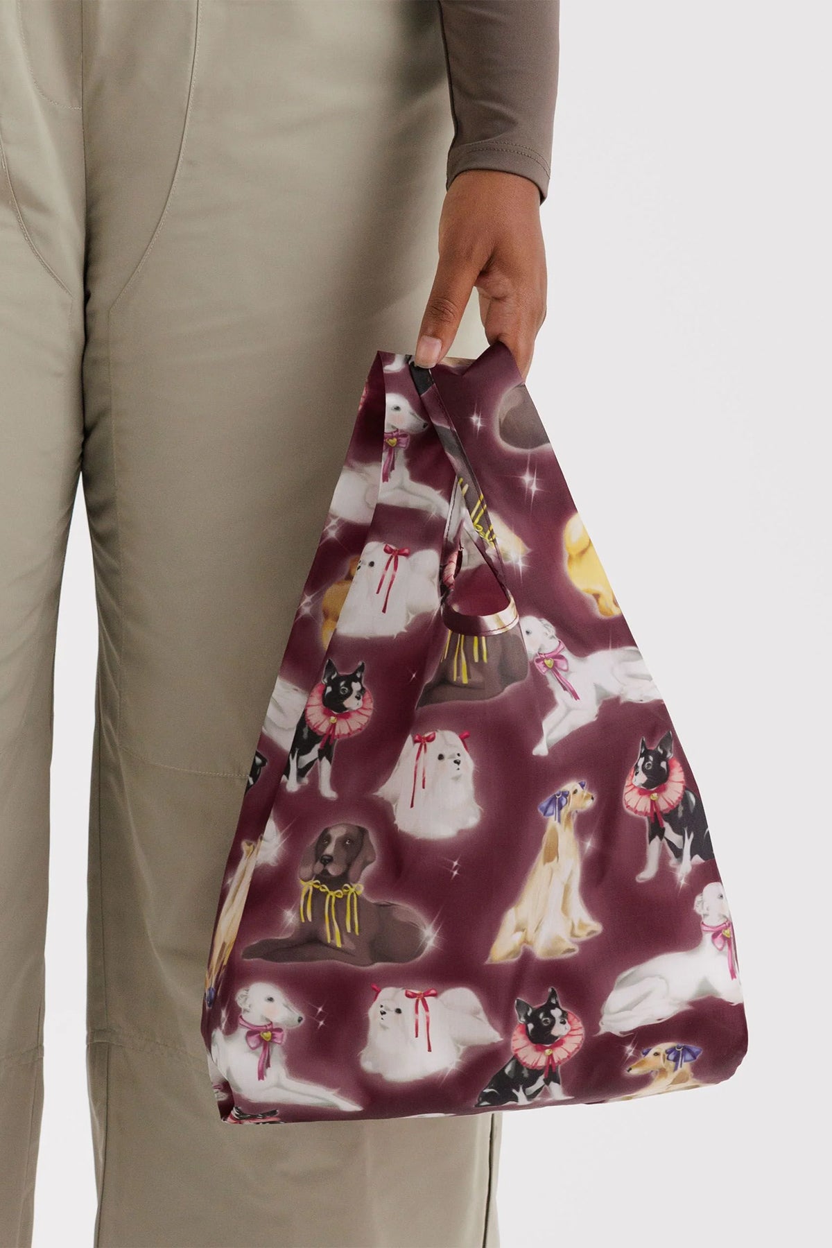 A smaller version of BAGGU's original reusable shopping bag. Perfect for your lunch, a six pack, extra shoes, or a trip to the corner store. A useful loop on its flat-pouch allows you to carry it on your keyring, so you have it when you need it.