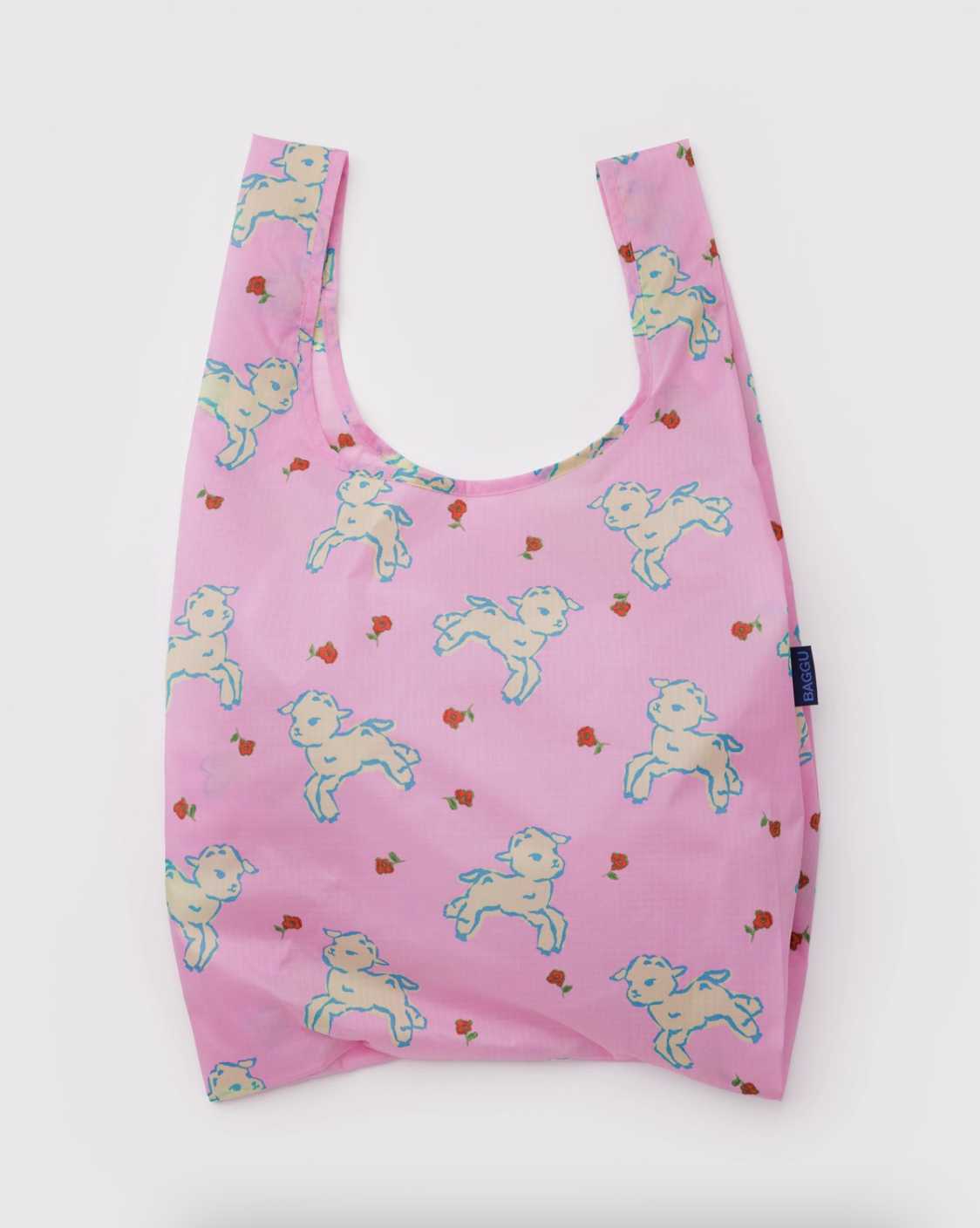 BAGGU's Standard Tote is second to none. This lightweight nylon ripstop bag holds up to 50 lbs of weight and folds flat into a 5" x 5" pouch, perfect for keeping in your back pocket or errand bag. A useful loop on its flat-pouch allows you to carry it in your keyring, so you have it when you need it.
