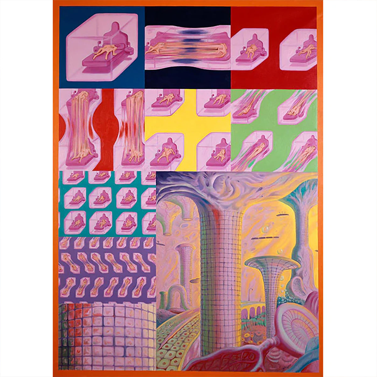 During this time, Tateishi’s personal artwork moved closer to visual narratives as he made several oil tableaux infused with science-fiction themes. Upon his return to Japan in 1982, he produced daily comics embracing the nonsense genre. Tiger Tateishi passed away at only 56 years of age, but is fondly remembered for the zest and energy of his mind-bending works, which invigorated the Japanese pop-art scene.