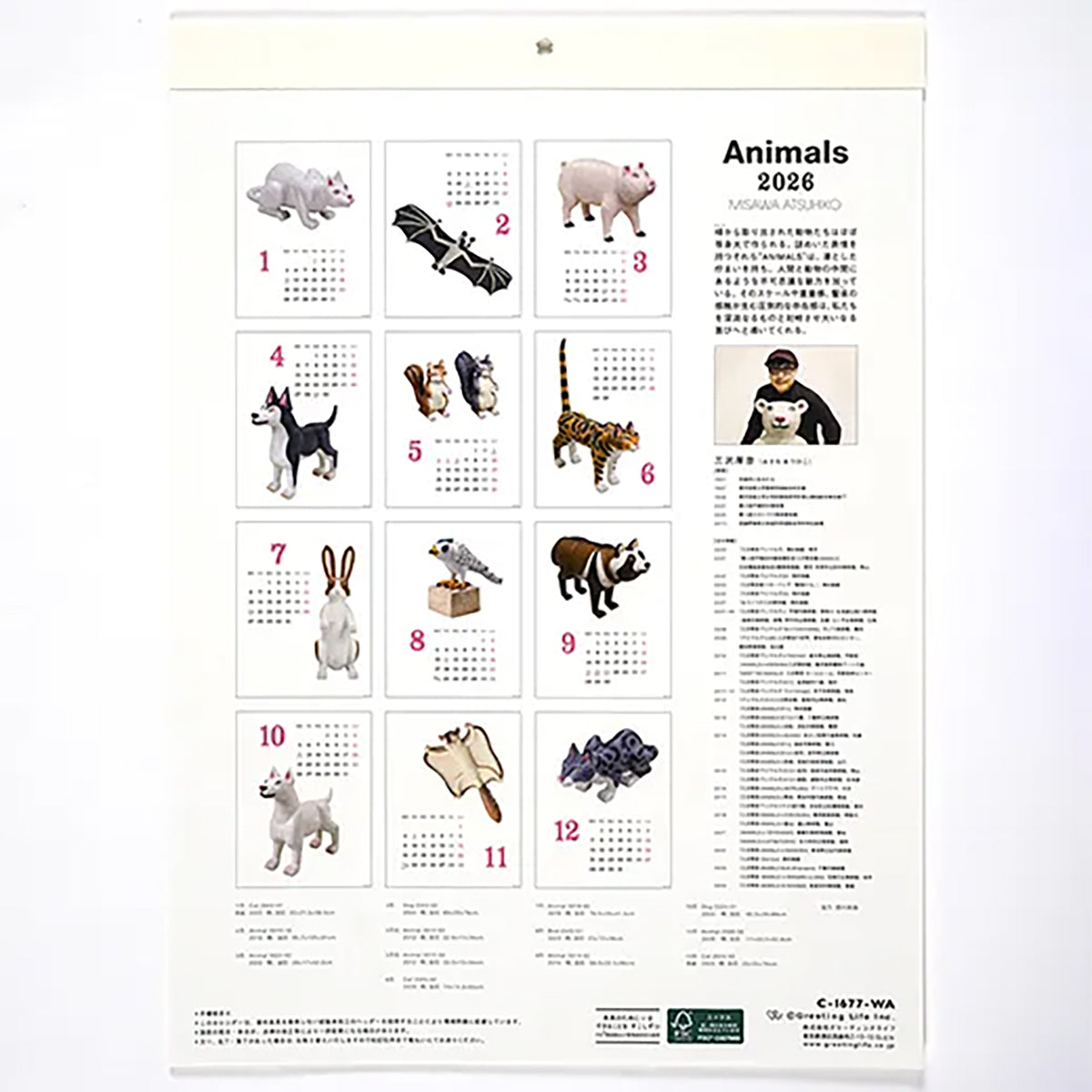 The 2026 edition of "ANIMALS" by Atsuhiko Misawa, a sculptor renowned in the contemporary art world, features sculptures and drawings featuring small animals.