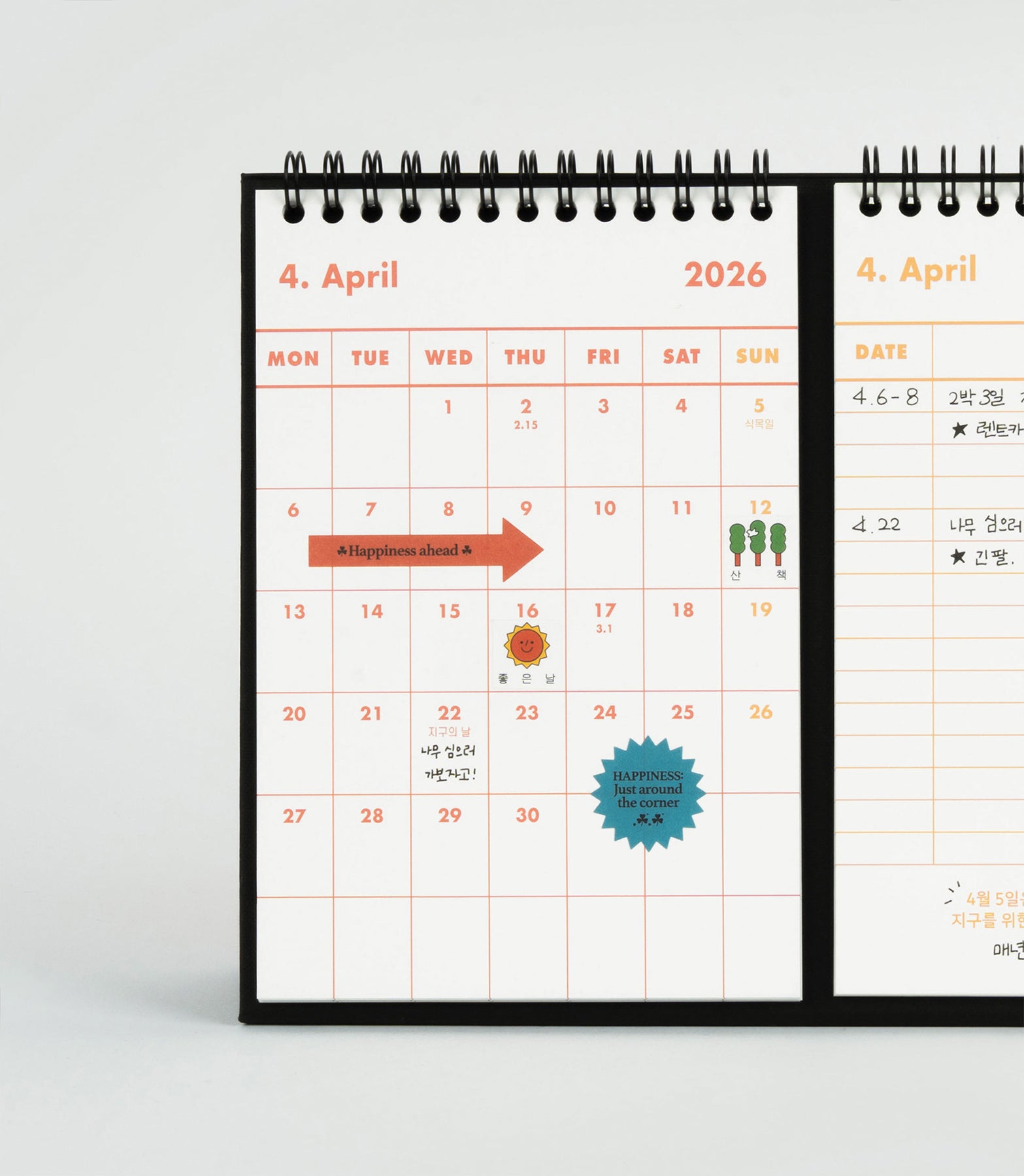 As a bonus, each month features an illustrated print on the back. Once you're done with the month you can rip off the calendar page and display the print on your wall. Prop it up for everyday use on your desk and fold it flat for easy storage on the move.