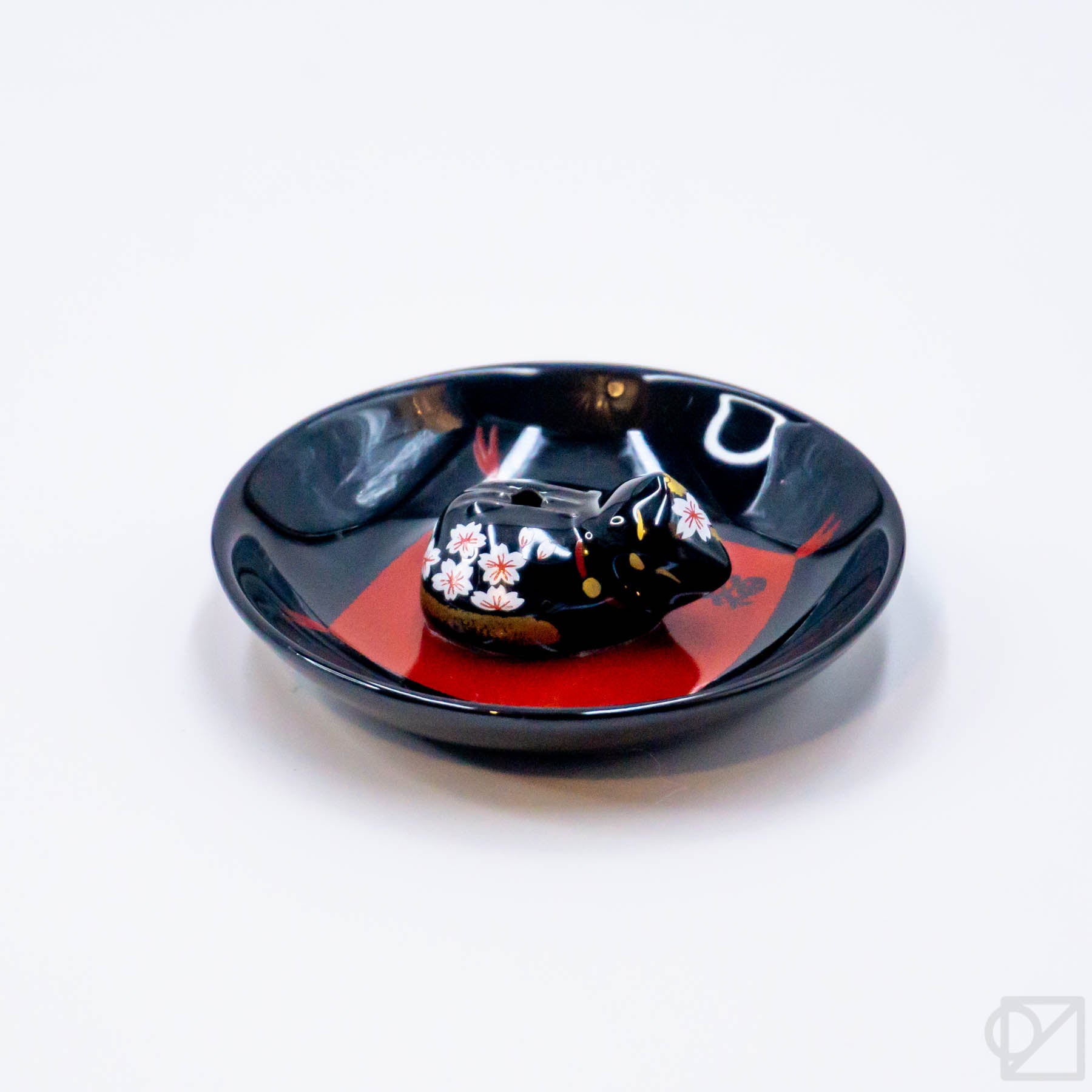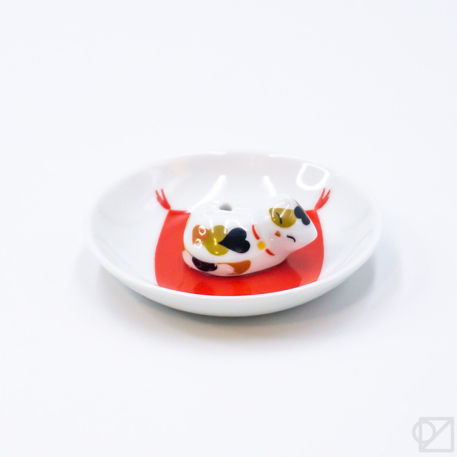 This sleepy cat keeps your incense burning in style. Features a ceramic plate and removable napping cat holder nestled inside. You can also use the cat holder to burn incense cones—just place it on top like a little party hat.