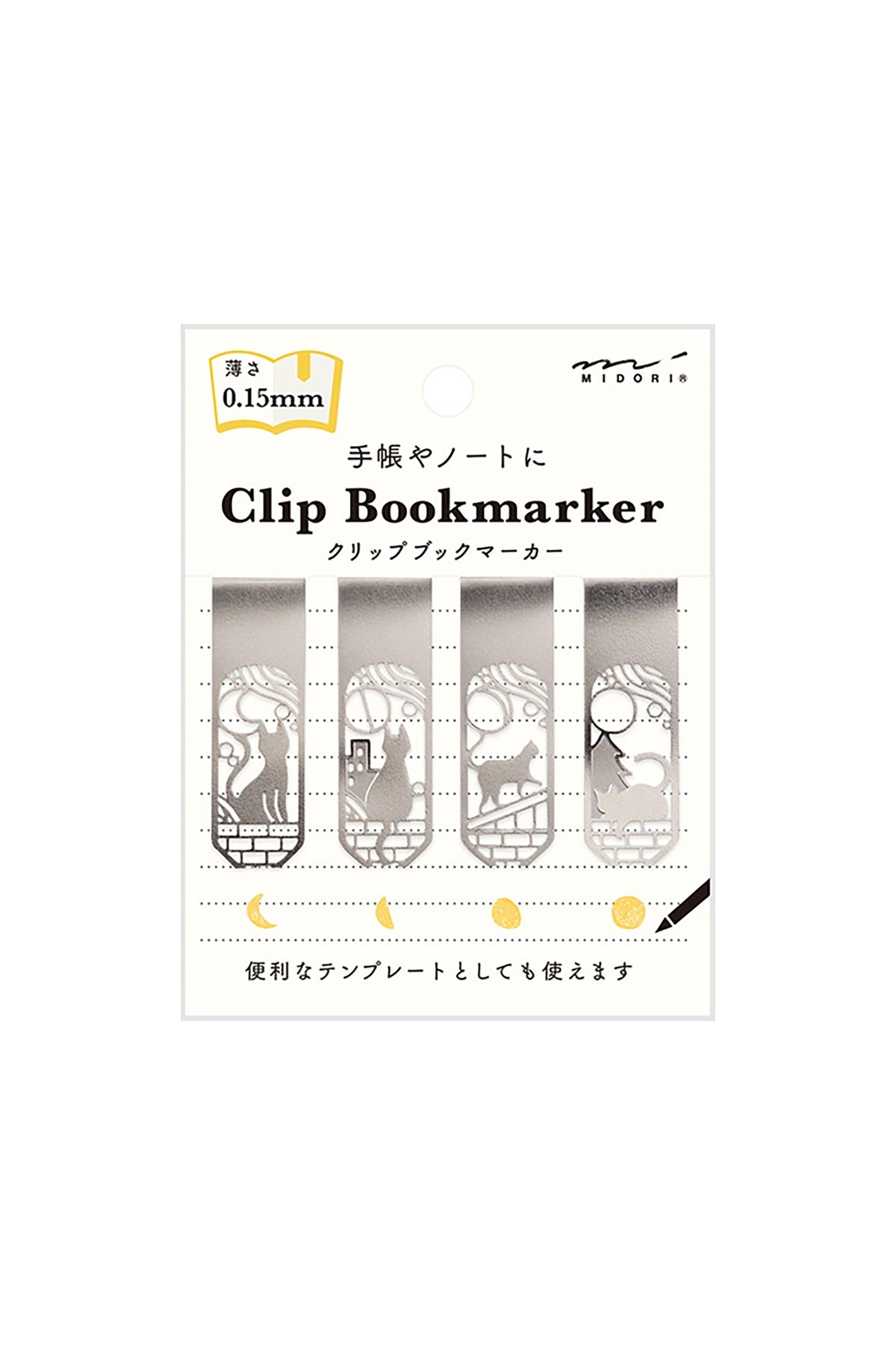 At 0.15mm thick, these super slim and lightweight stainless steel bookmark clips keep your page with minimal interference. Their etched patterns double as templates for drawing icons – just make sure to use a mechanical pencil or ballpoint pen with a core of 0.5 mm or less.