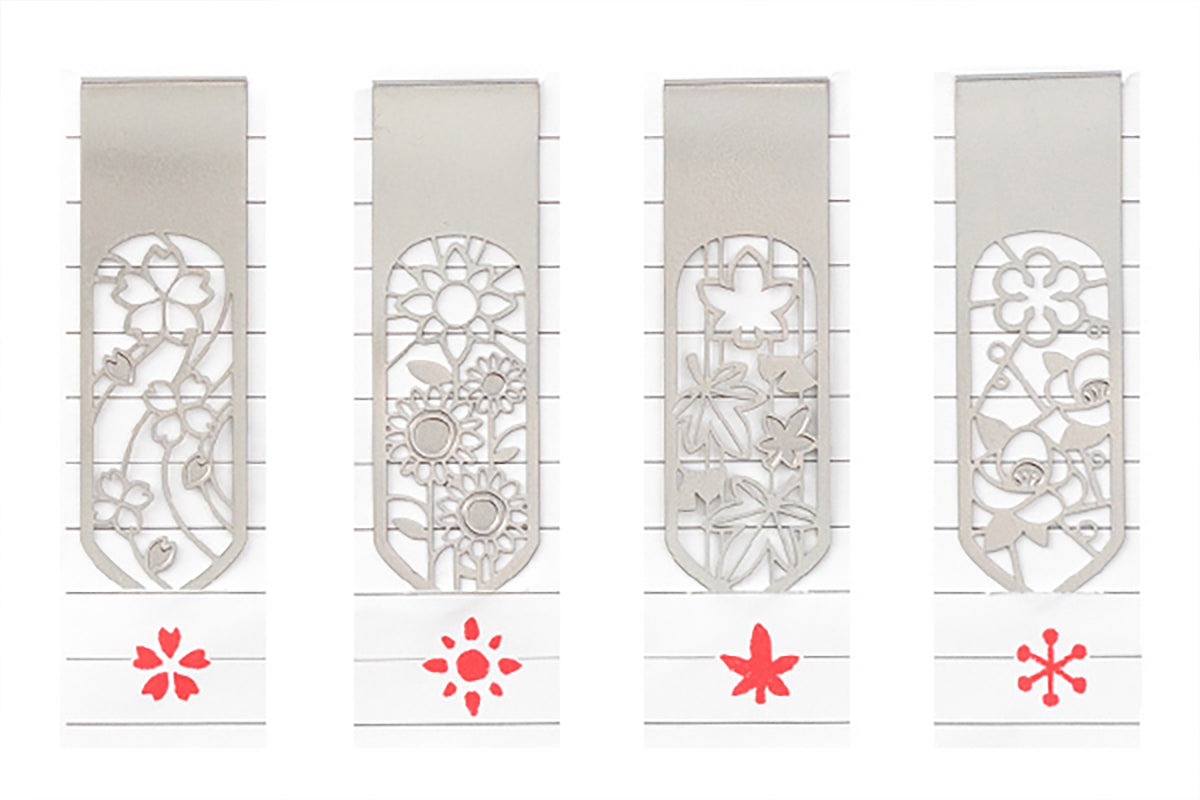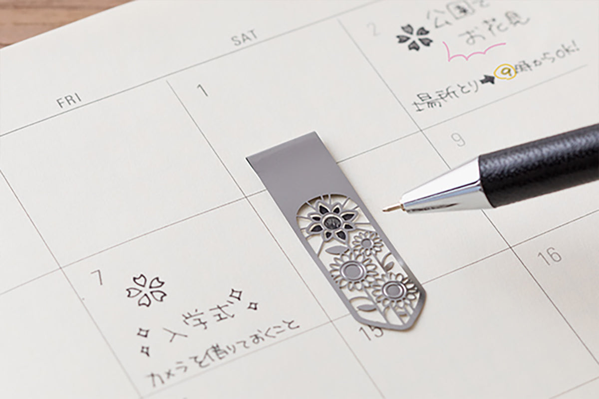 At 0.15mm thick, these super slim and lightweight stainless steel bookmark clips keep your page with minimal interference. Their etched weather patterns double as templates for recording the weather – just make sure to use a mechanical pencil or ballpoint pen with a core of 0.5 mm or less.