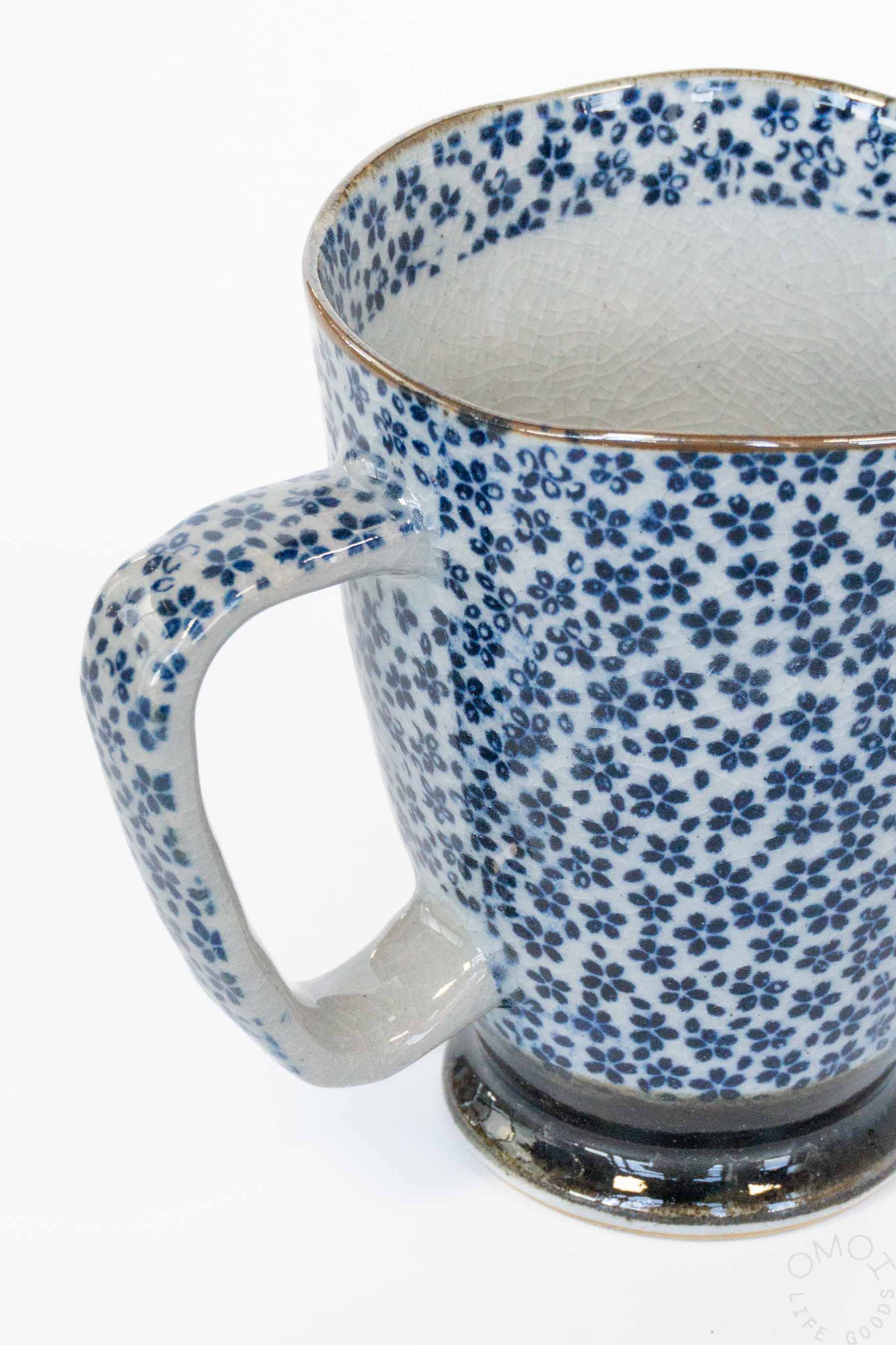 Blue and white mug with a floral motif for the perfect cup of morning coffee or afternoon tea.