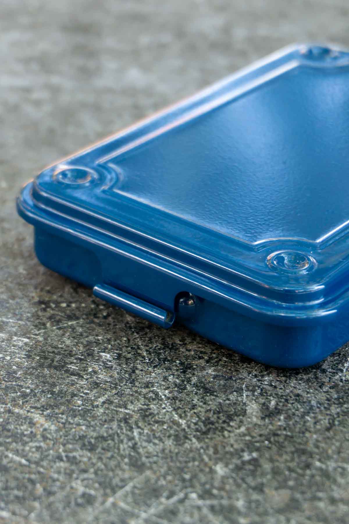 A handy, stackable storage box from Toyo Steel. Made from stainless steel with a handsome paint finish, Toyo Steel's products are highly regarded by a wide range of people—from craftsmen to designers. The T-152 Storage Box has a clean and practical design with a raised latch that lets you open and close the box with relative ease. The feeling of a latch that snaps shut also gives a nostalgic and refreshing feeling.