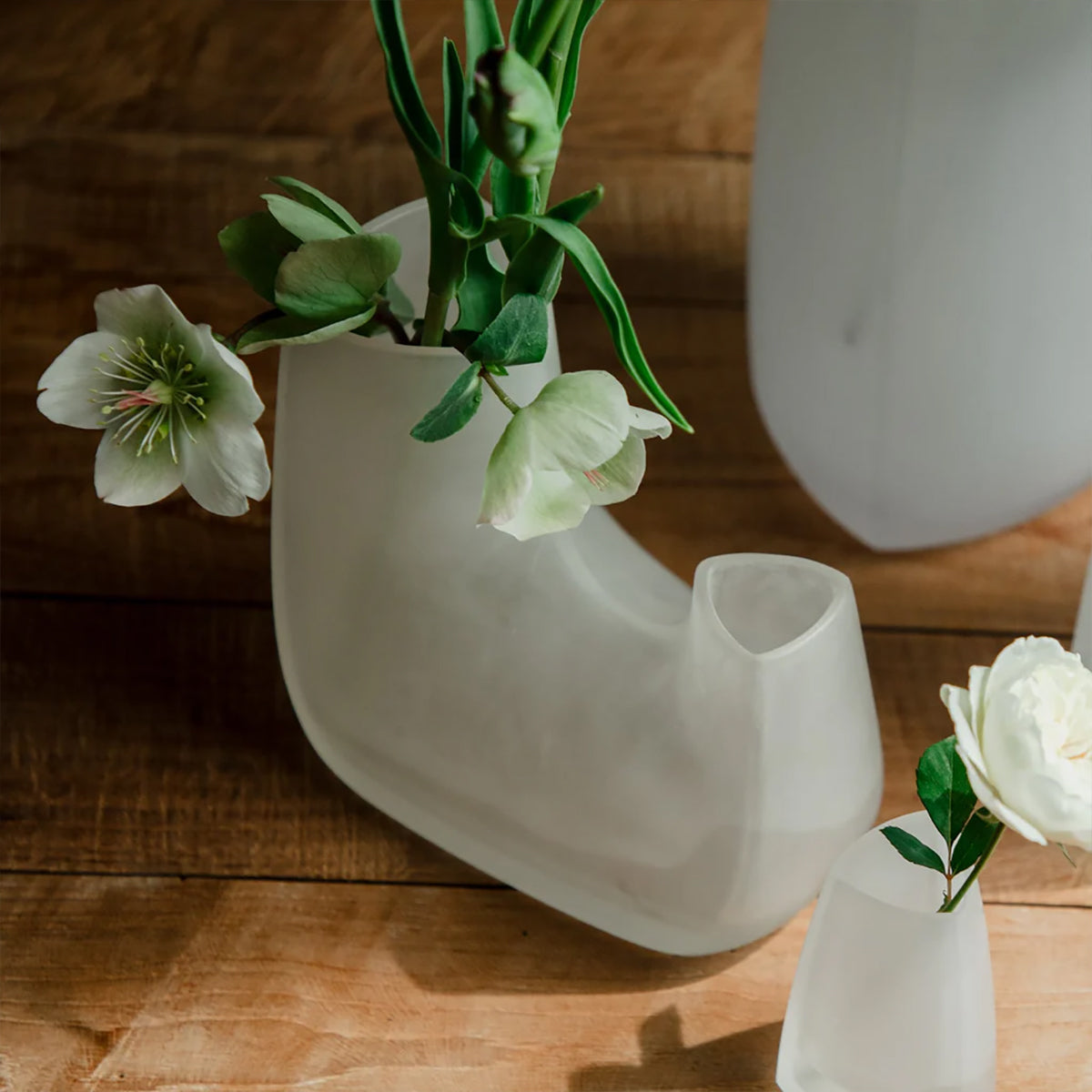 With a wide base and gently tapered triangular opening, the form is designed to support balanced arrangements, whether it's a full bouquet or just a few stems.