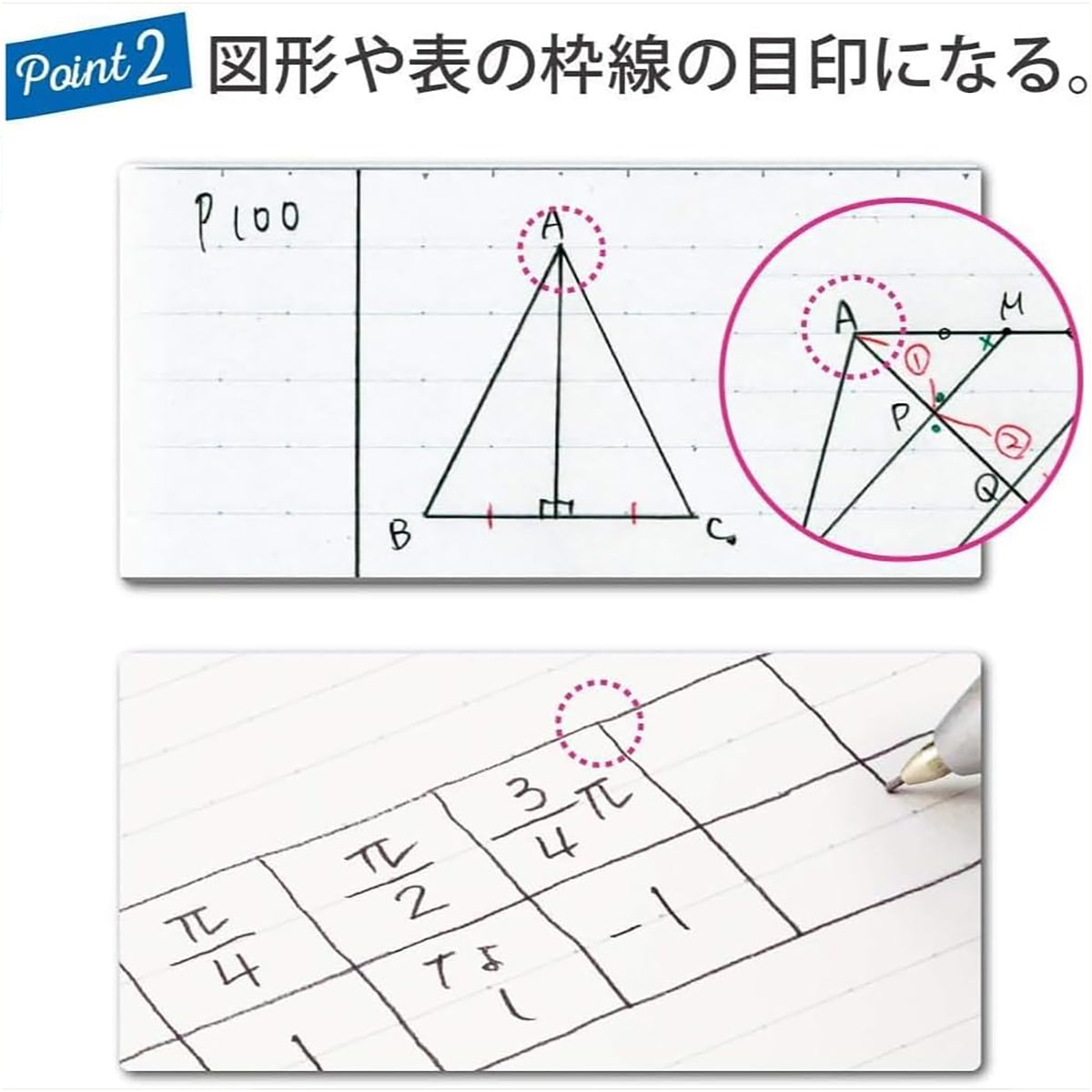 Productive Format: Campus Notebooks feature a "line with dot" format, which utilizes subtle marks on each page, making it easy to draw clean divisions when needed. Triangular marks on the left, right, and center of each page top and bottom make it easier to draw vertical lines, while additional marks every 5 lines let you quickly eyeball, count, or create horizontal sections.