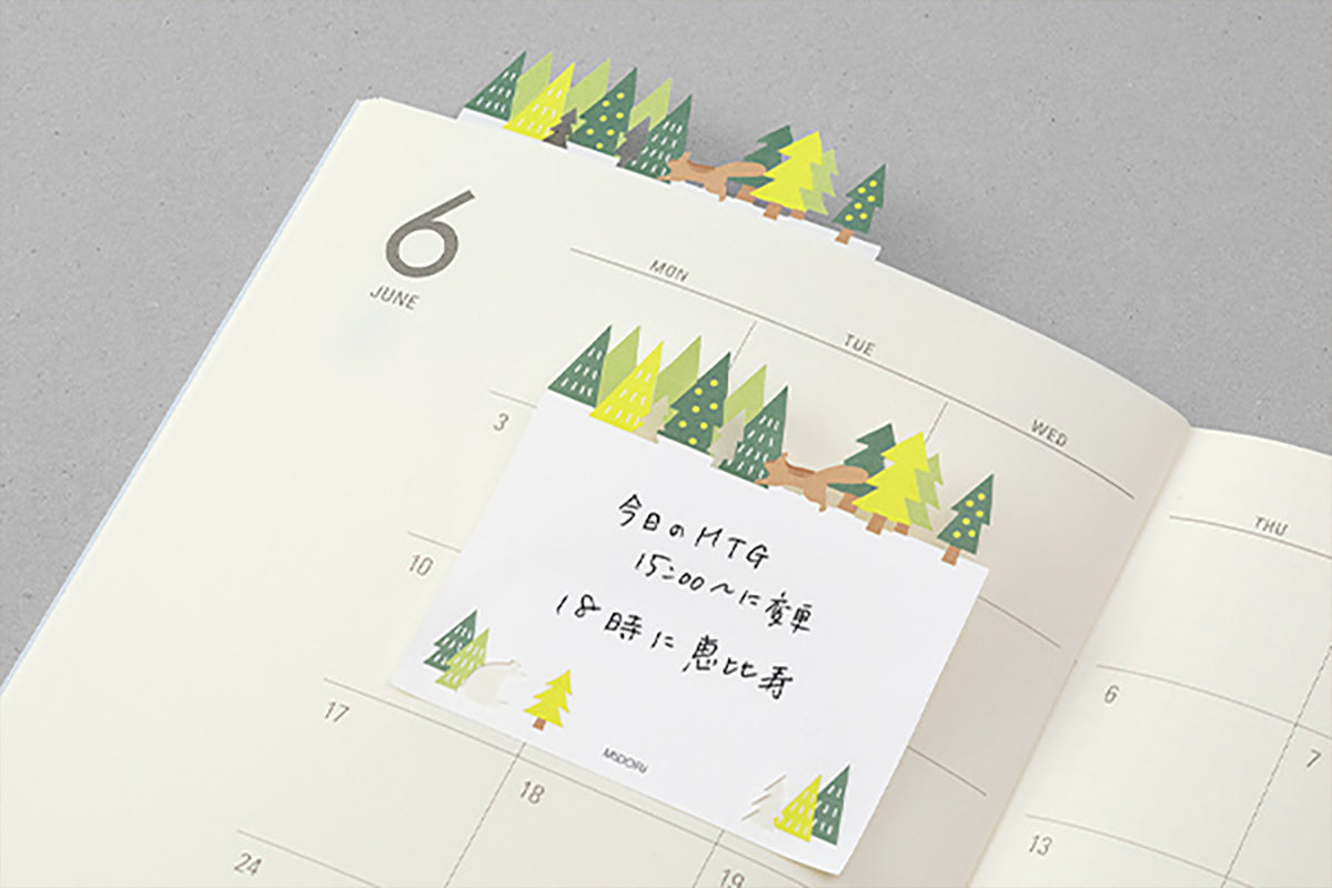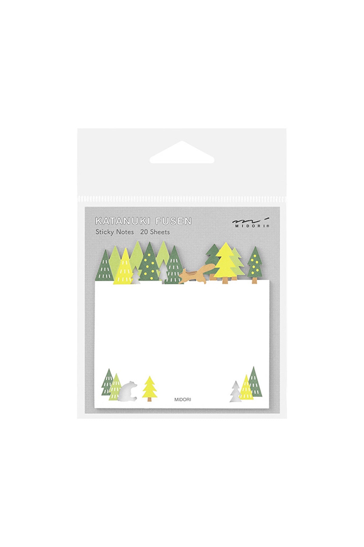 The Midori Katanuki Sticky Notes Forest features trees, with squirrels and bears hiding within.