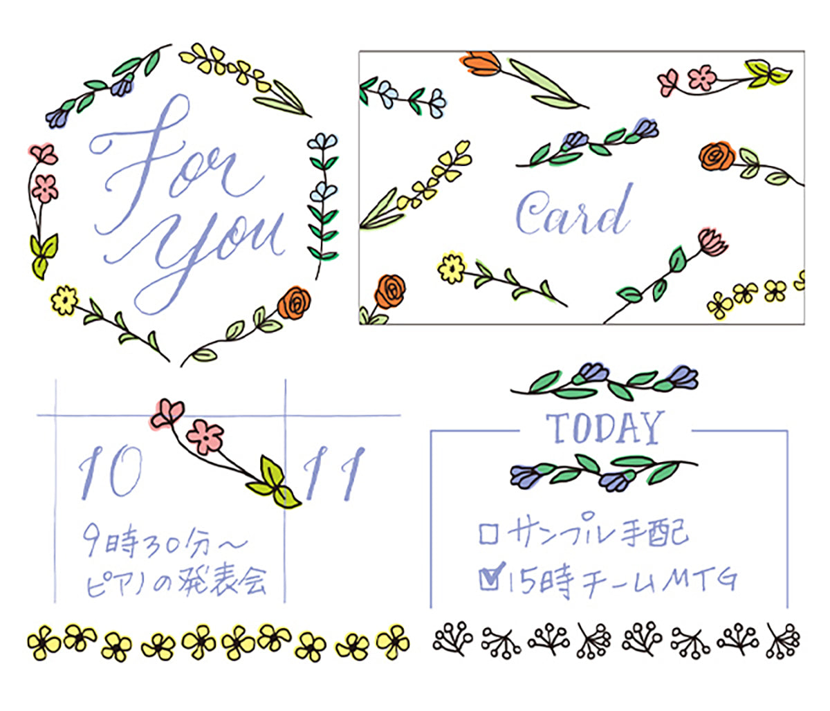 Easily and beautifully decorate the margins of your planner, notes, or cards in seconds with this useful self-inking stamp. The oil-based ink will not bleed even if you color over it with a water-based marker, allowing you to color in the illustrations in the style you prefer.