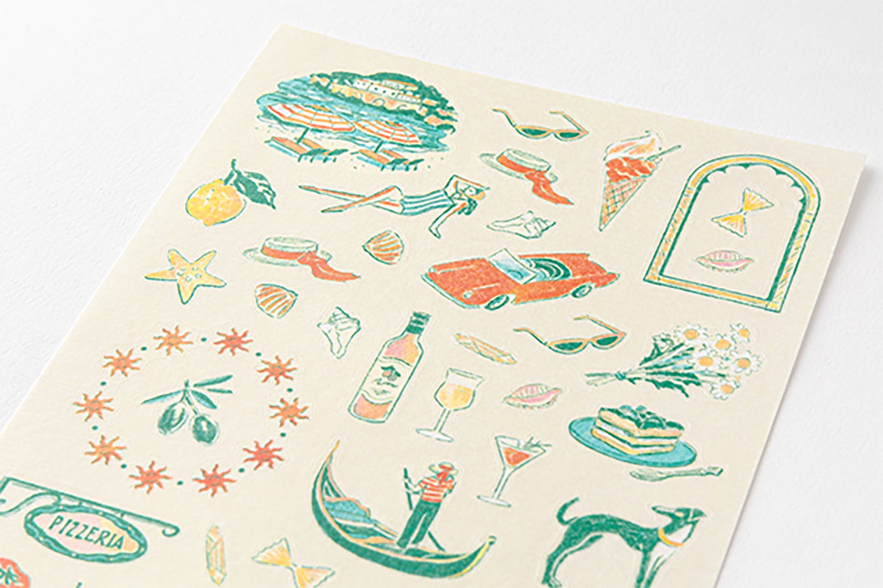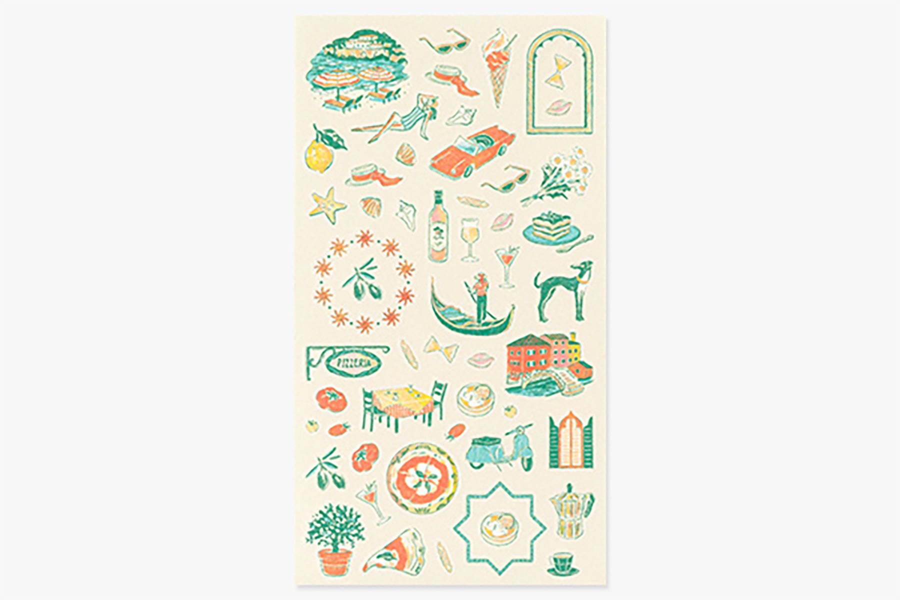 These Midori stickers are packed with large and small motifs that are easy to use for decorating your planners and notebooks. They have a story to tell, and feature framed designs featuring motifs unique to Italy and traditional patterns allowing you to feel like you're traveling while decorating.
