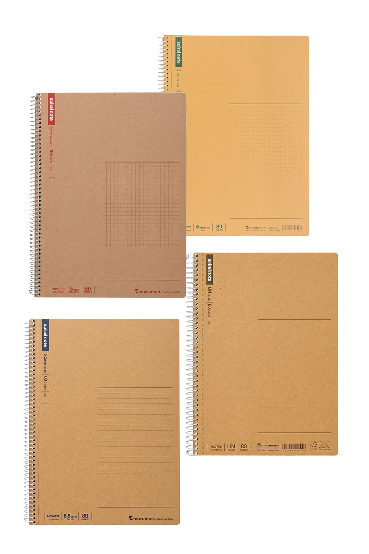 Available in 5mm grid or 6.5mm college rule formats in all-purpose B5 size.