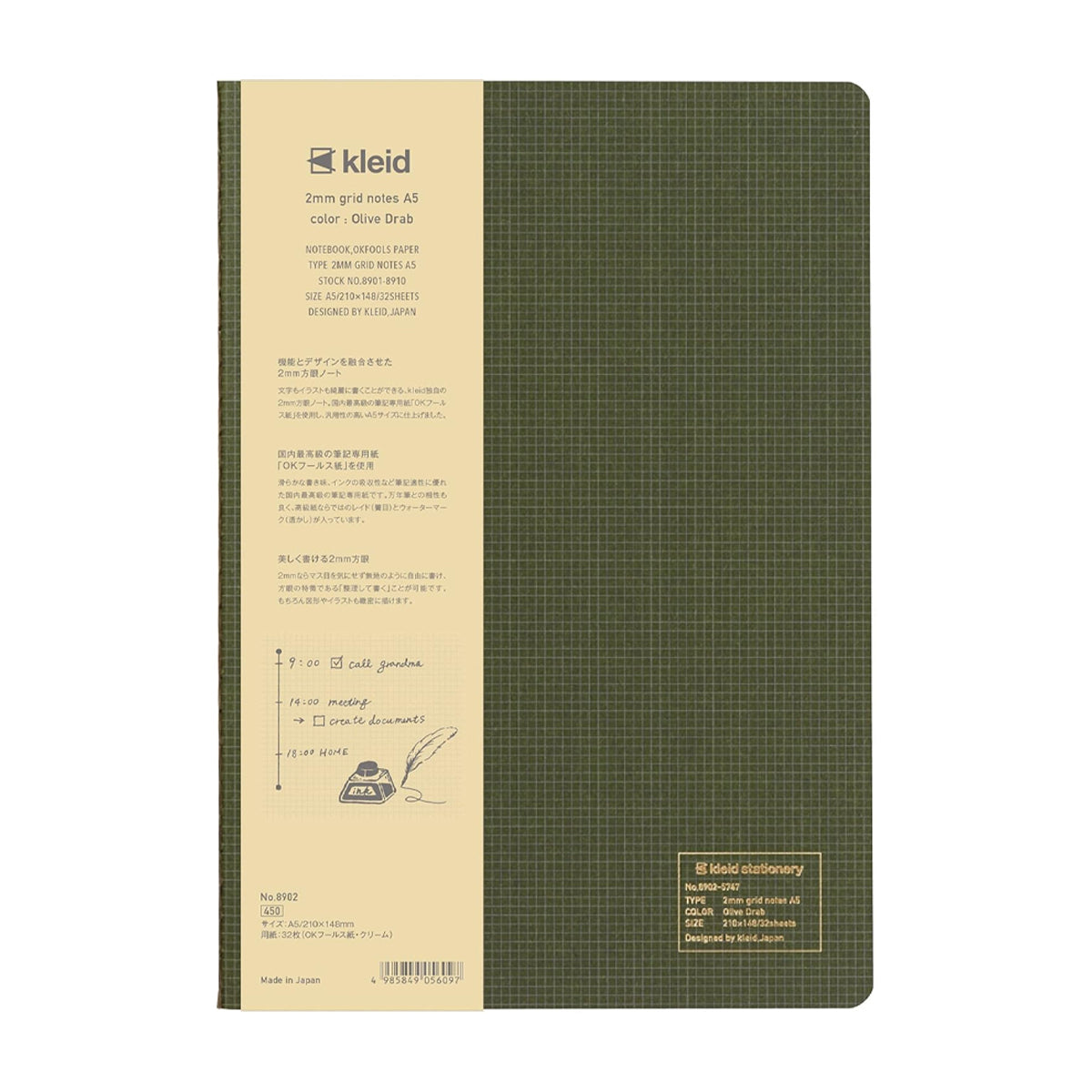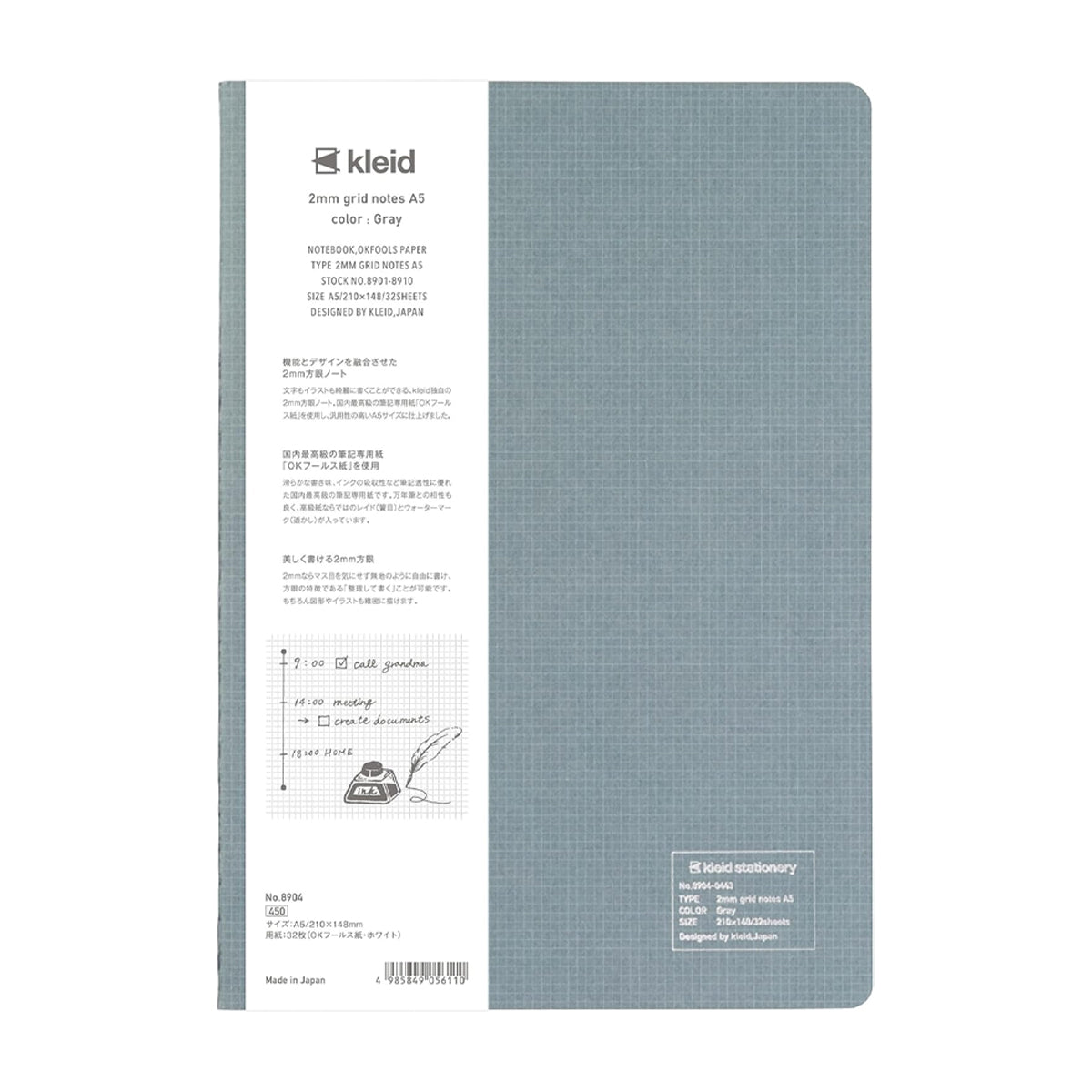 This Kleid Notes A5 Notebook features Kleid's signature 2mm grid, perforated pages, and Yamamoto Paper OK Fools Fountain Pen friendly paper for the perfect everyday notebook.
