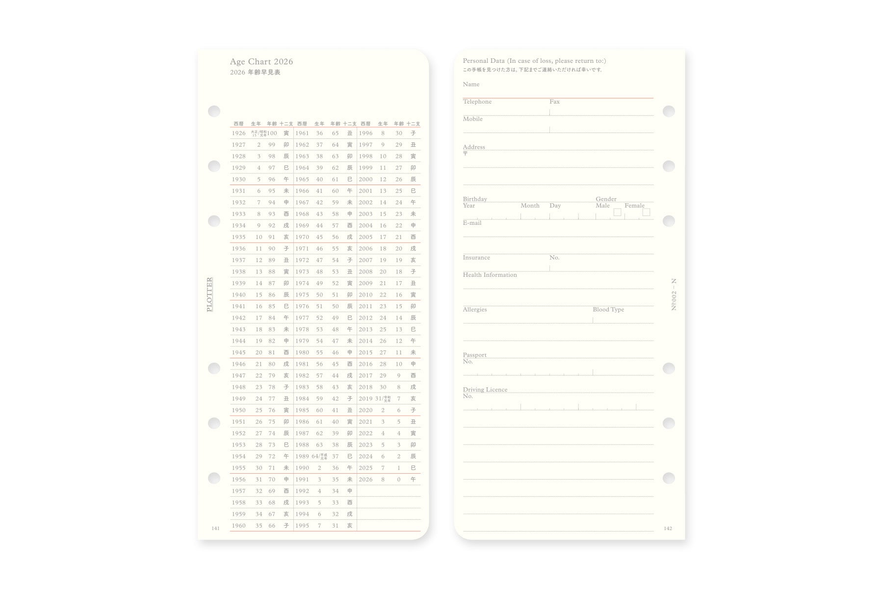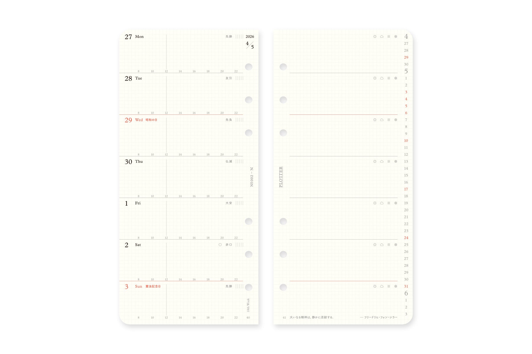 PLOTTER 2026 Weekly Schedule Diary Refill Narrow Size