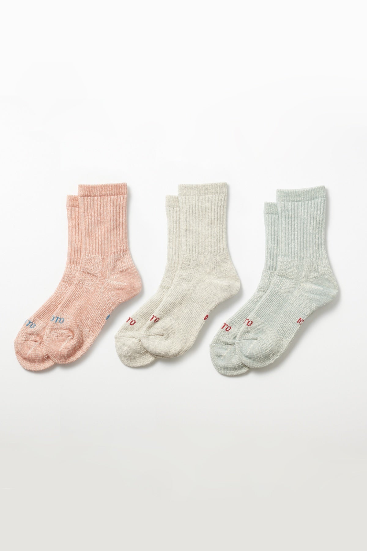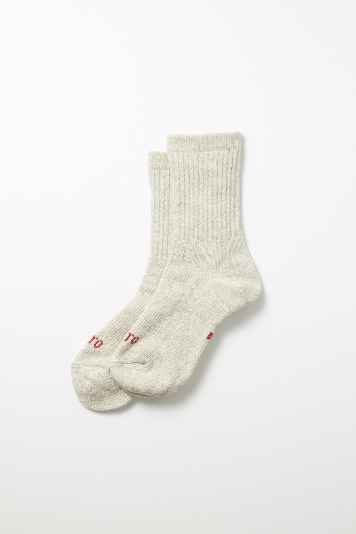 Featuring a double-face construction with a moderate thickness, both the outer and inner layers are made from organic cotton. The inside is knitted in a lightweight pile using undyed organic cotton, while the rib at the opening and the elastic arch support are designed for a soft fit. This minimizes pressure and provides a relaxed, comfortable feel that can be worn year-round.