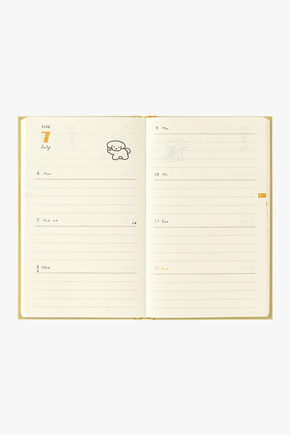 Illustrated with Natsumi Teraoka’s dogs with the theme "sceneries with dogs" featuring cute, round dogs, this is the planner you’ll want to use every day. We recommend it for those who want to keep a record of their daily lives (and a cute little friend to see them through the long days).