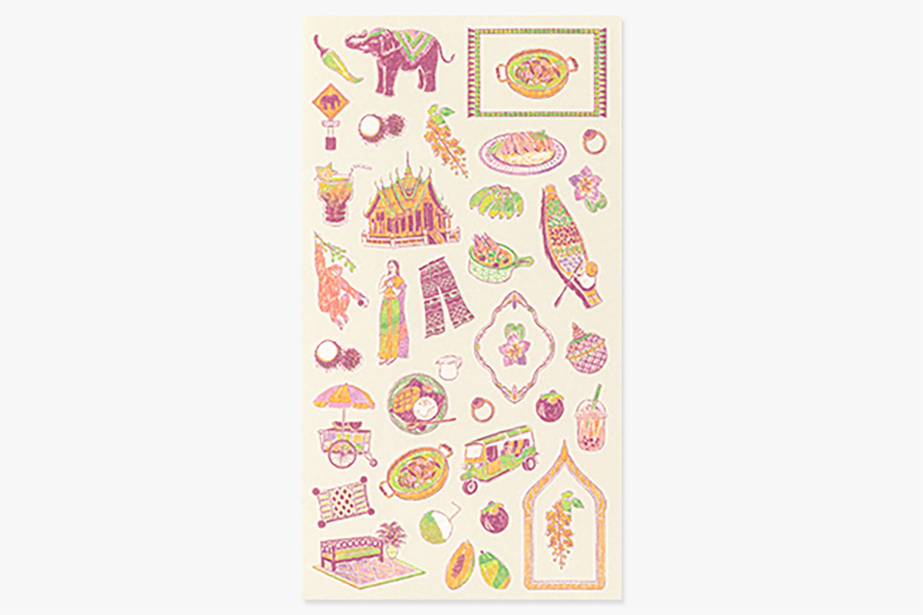 These Midori stickers are packed with large and small motifs that are easy to use for decorating your planners and notebooks. They have a story to tell, and feature framed designs featuring motifs unique to Thailand and traditional patterns, allowing you to feel like you're traveling while decorating.