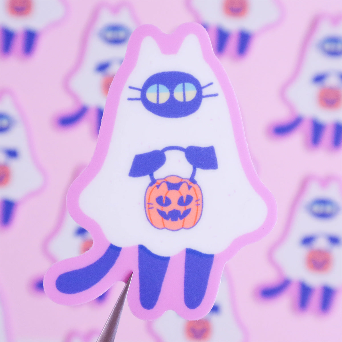 • 3" matte vinyl sticker of Trick or Treat Kuni by artist Radhia Rahman