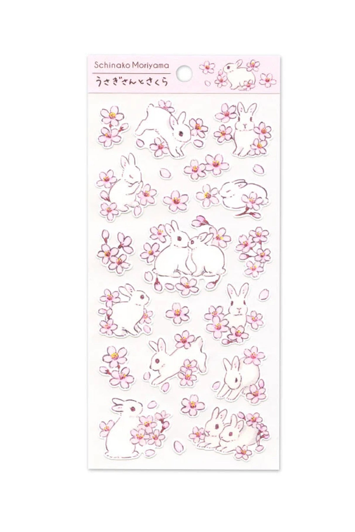 Schinako Moriyama Rabbits and Cherry Blossoms Cotton Paper Stickers