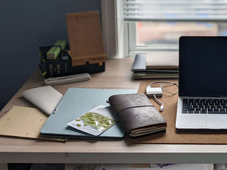 The original TRAVELER'S COMPANY notebook is a leather cover-based journaling system in 2 sizes, with a unique range of notebook inserts and accessory items. Its versatility appeals to a variety of needs, from planning to watercoloring, travel wallet to everyday carry.