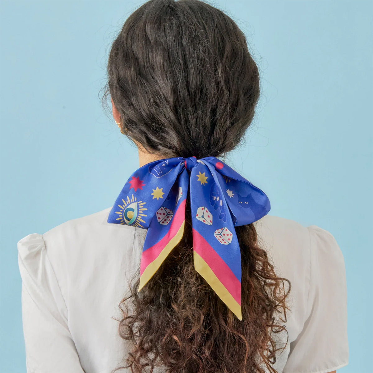 Made of hundred percent twill silk, this skinny scarf features a double-sided print for double the fun. Centinelle's skinny scarf silk twilly is perfect as head scarf, bracelet or tie to your hair bun, to decorate your bag handle… so many possibilities, the sky is the limit!