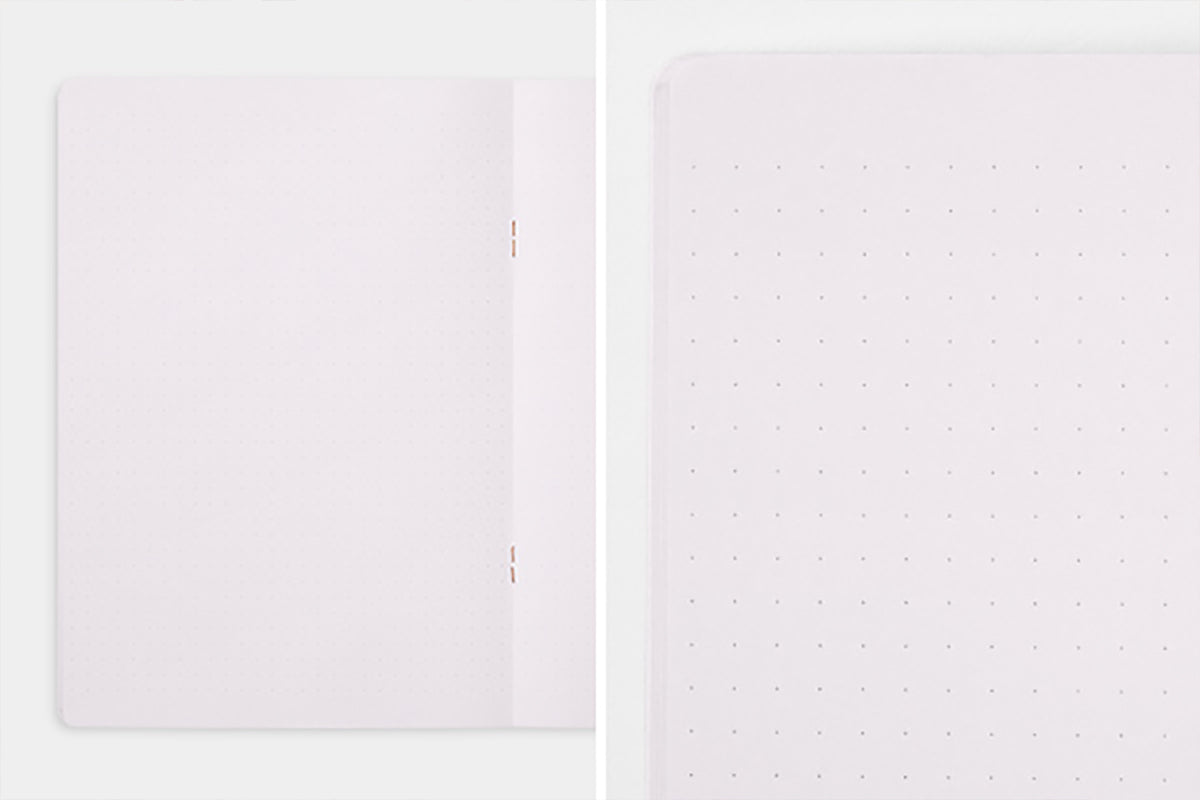 The colored inner paper is high-quality paper that is easy to write on with any pen. The dot grid provides a subtle guide for writing and drawing, and also makes it easy to neatly attach stickers and photos.