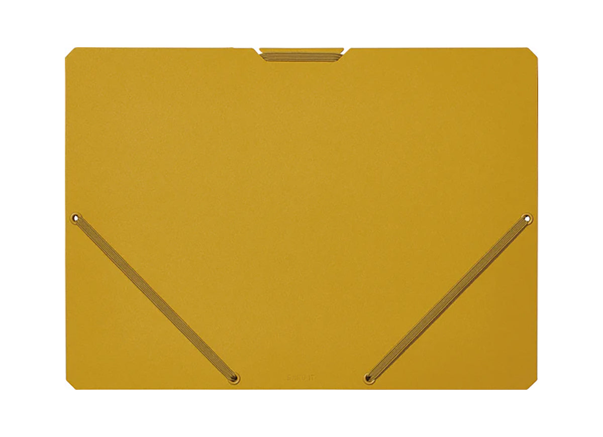 The SAND IT Document Holder is a thickness-adjustable file folder that helps you easily organize papers by just throwing them in. Its elastic band adjusts the thickness in accordance with the contents, allowing up to 250 sheets of paper, clear file holders, and thick booklets. 2 built-in tabs for classifying contents are inside the sturdy outer file, all held together by a hefty elastic closure. Stay organized and looking good while doing it. Win-win.