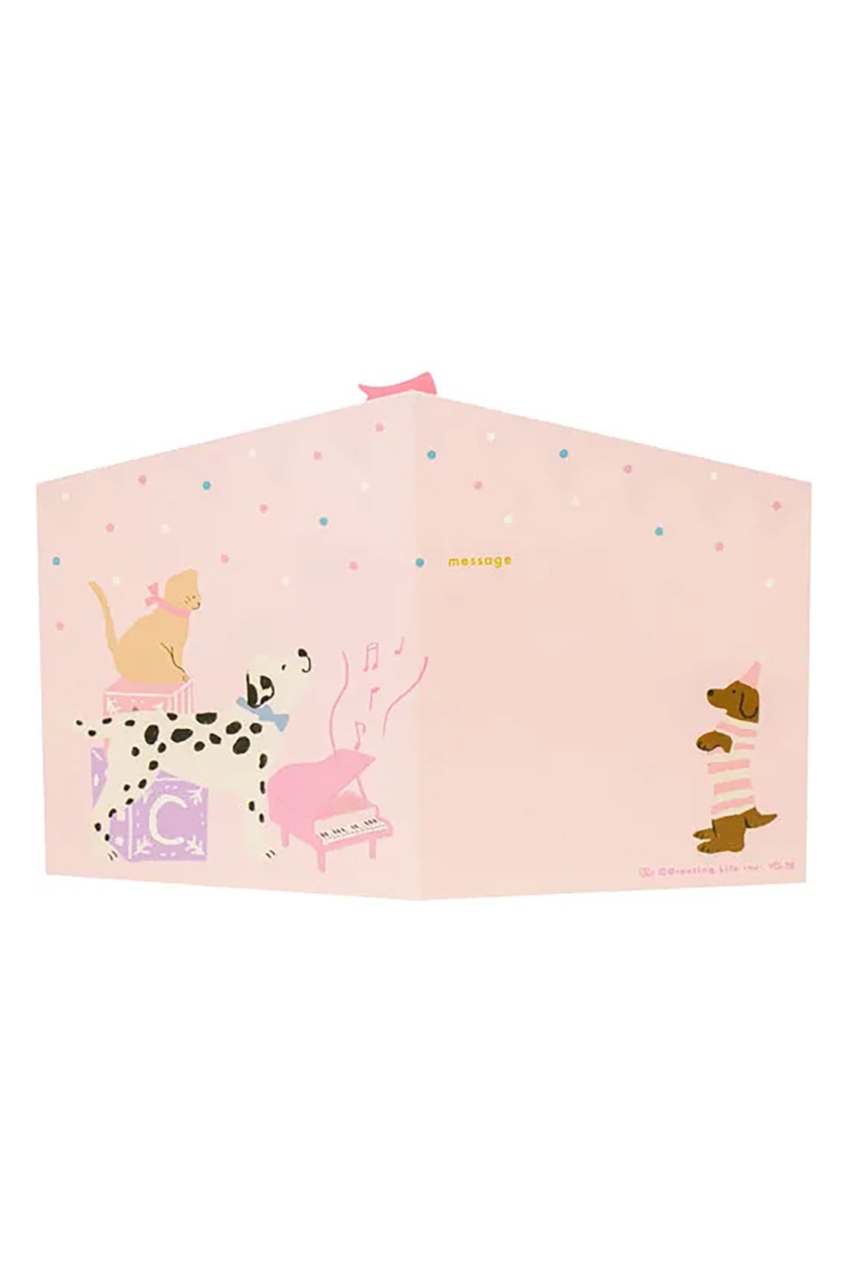 This heartwarming baby card features a scene of many animals celebrating a newborn baby.