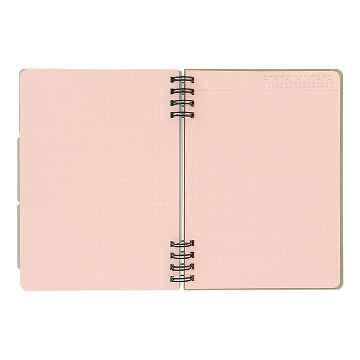 The Rollbahn FLEXIBLE series is designed to help you make it a habit to reclassify your thoughts by page and organize them. Since the front and back covers are separated, there is no spine, and the cover can be folded back 360 degrees like a ring notebook for a compact use. It is easy to use when writing while standing or in a limited space such as a desk at home.