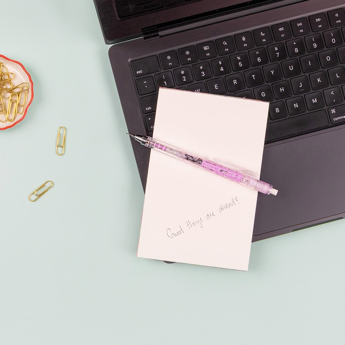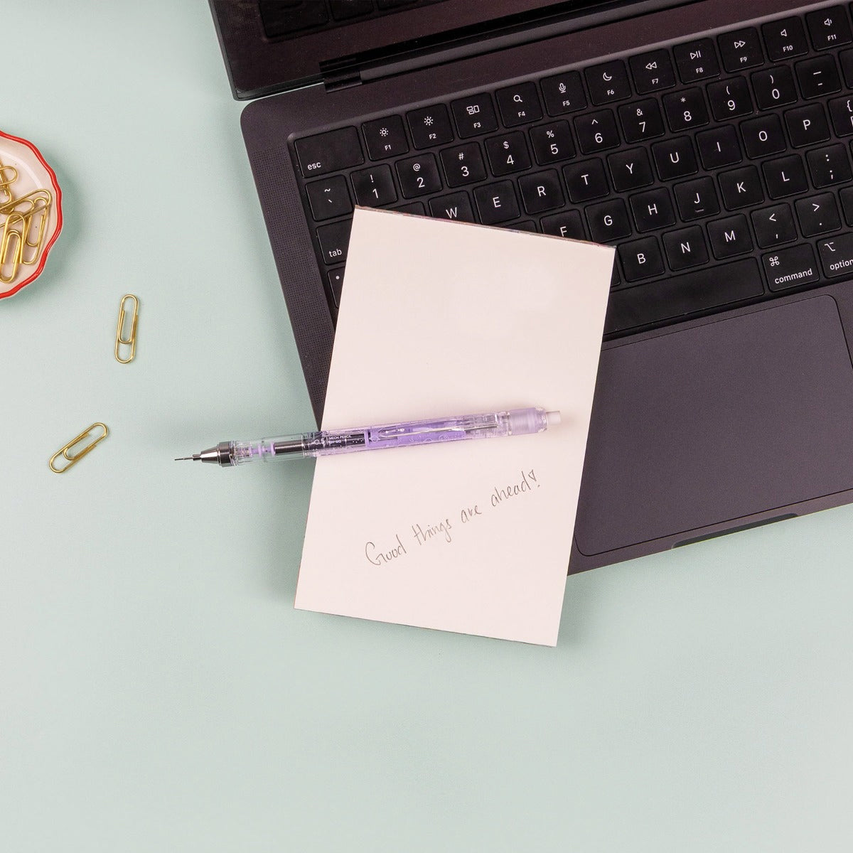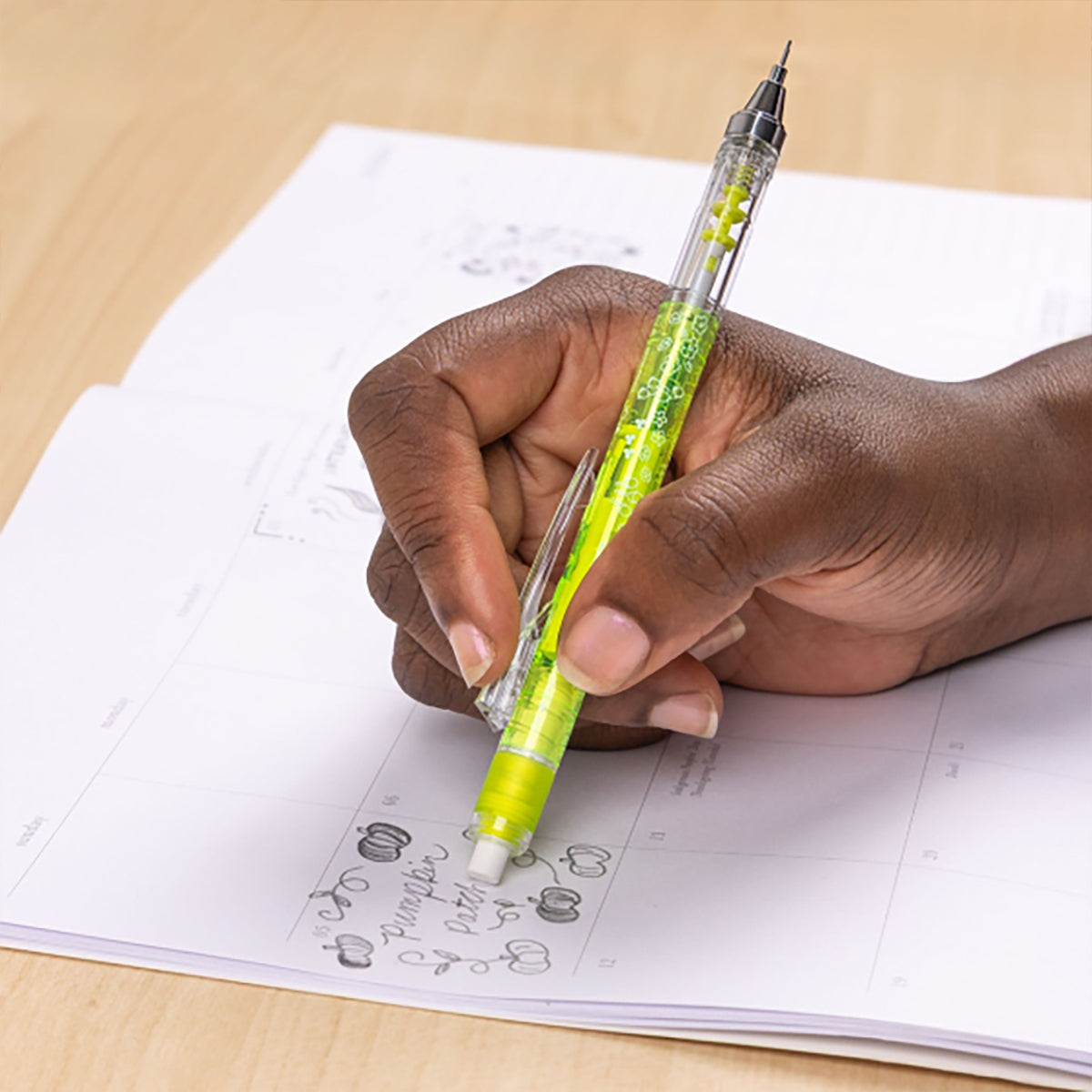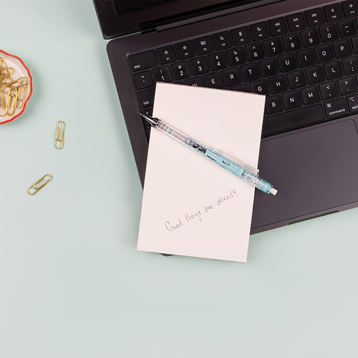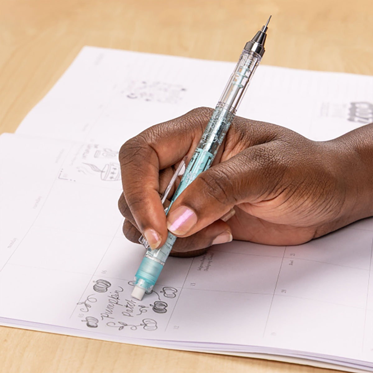 The MONO Graph Nature mechanical pencil features an innovative shake-mechanism that allows you to extend the lead by simply shaking the pencil. Its clip is equipped with a shake lock that prevents accidental lead extension, ensuring you can write and draw securely and comfortably. The 4mm long fixed guide pipe prevents lead breakage and allows for precise writing and drawing. Refillable with 0.5mm HB lead, perfect for your daily writing or sketching needs.
