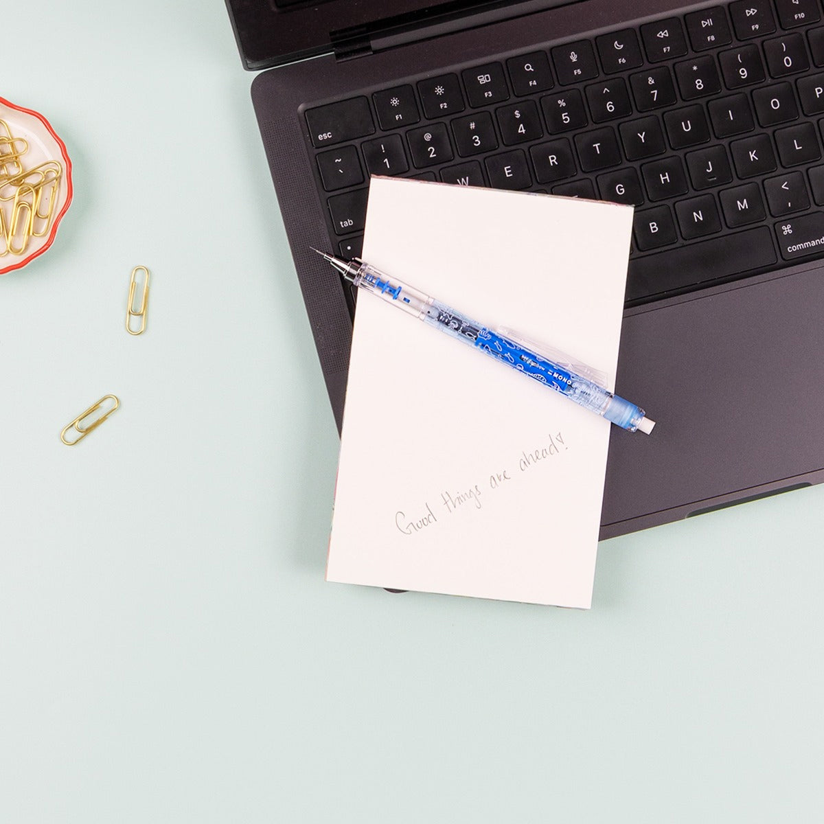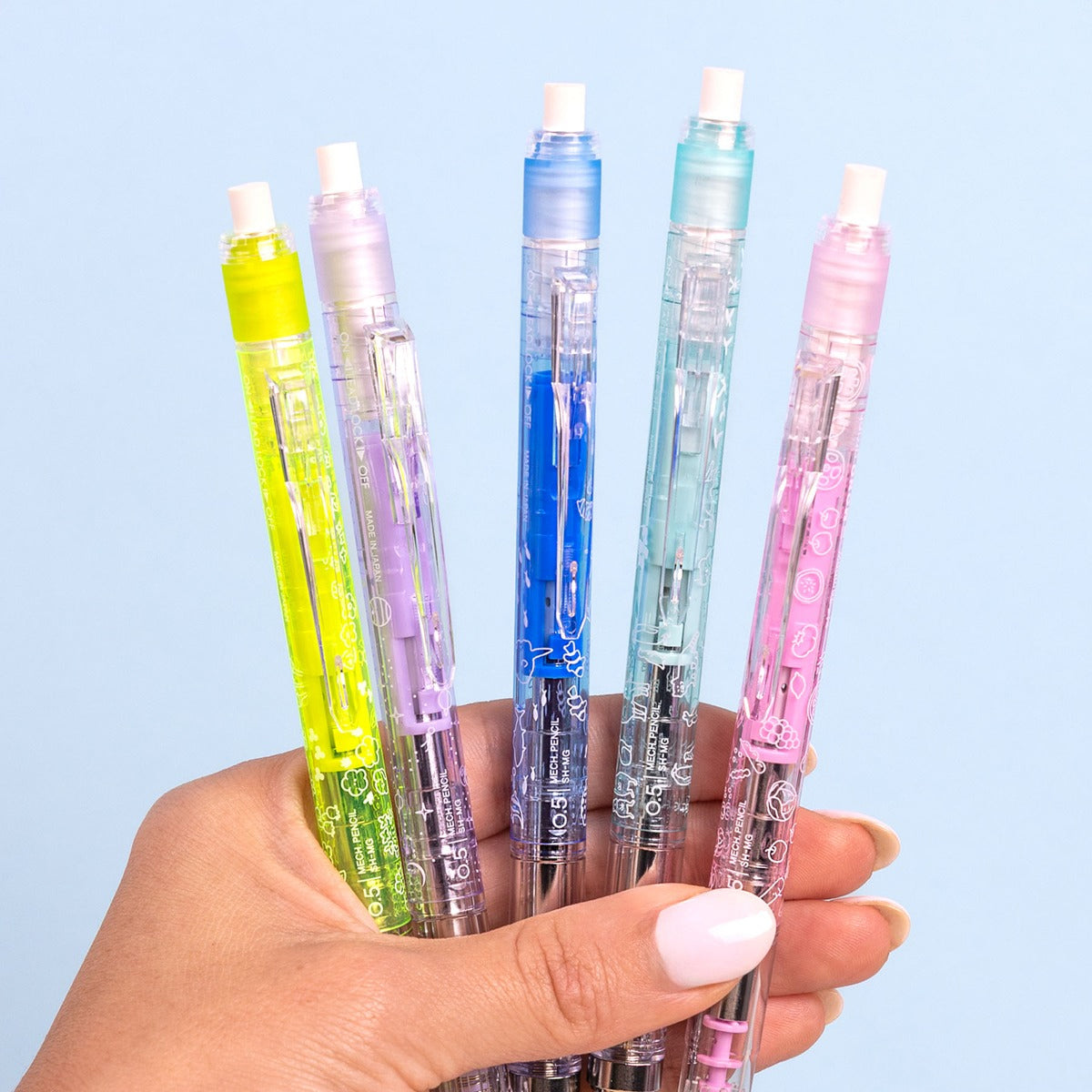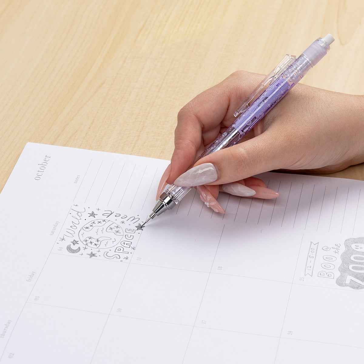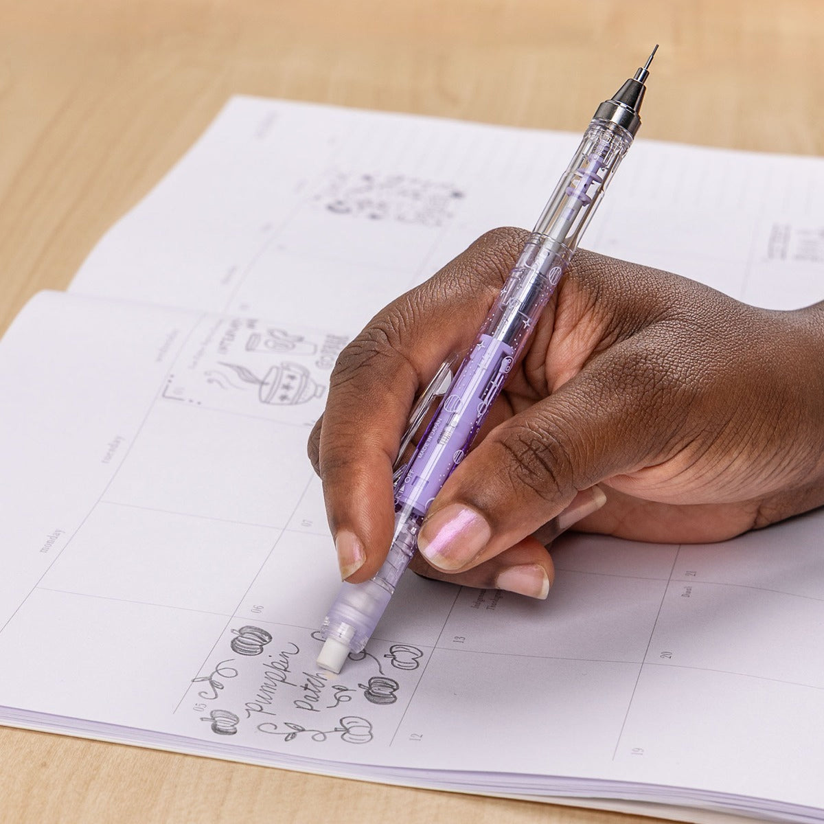 Limited Edition MONO Graph Nature mechanical pencil series featuring delightful nature-themed doodles on the barrel. Each pencil showcases a unique design inspired by the natural world: Animal, Botanical, Fruit, Ocean, and Planet.
