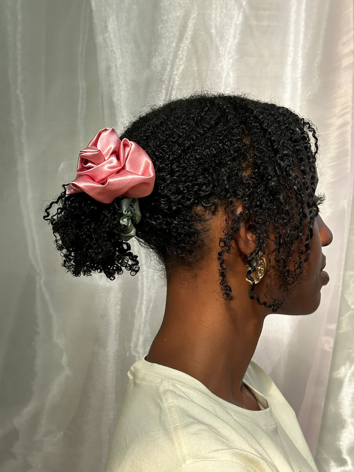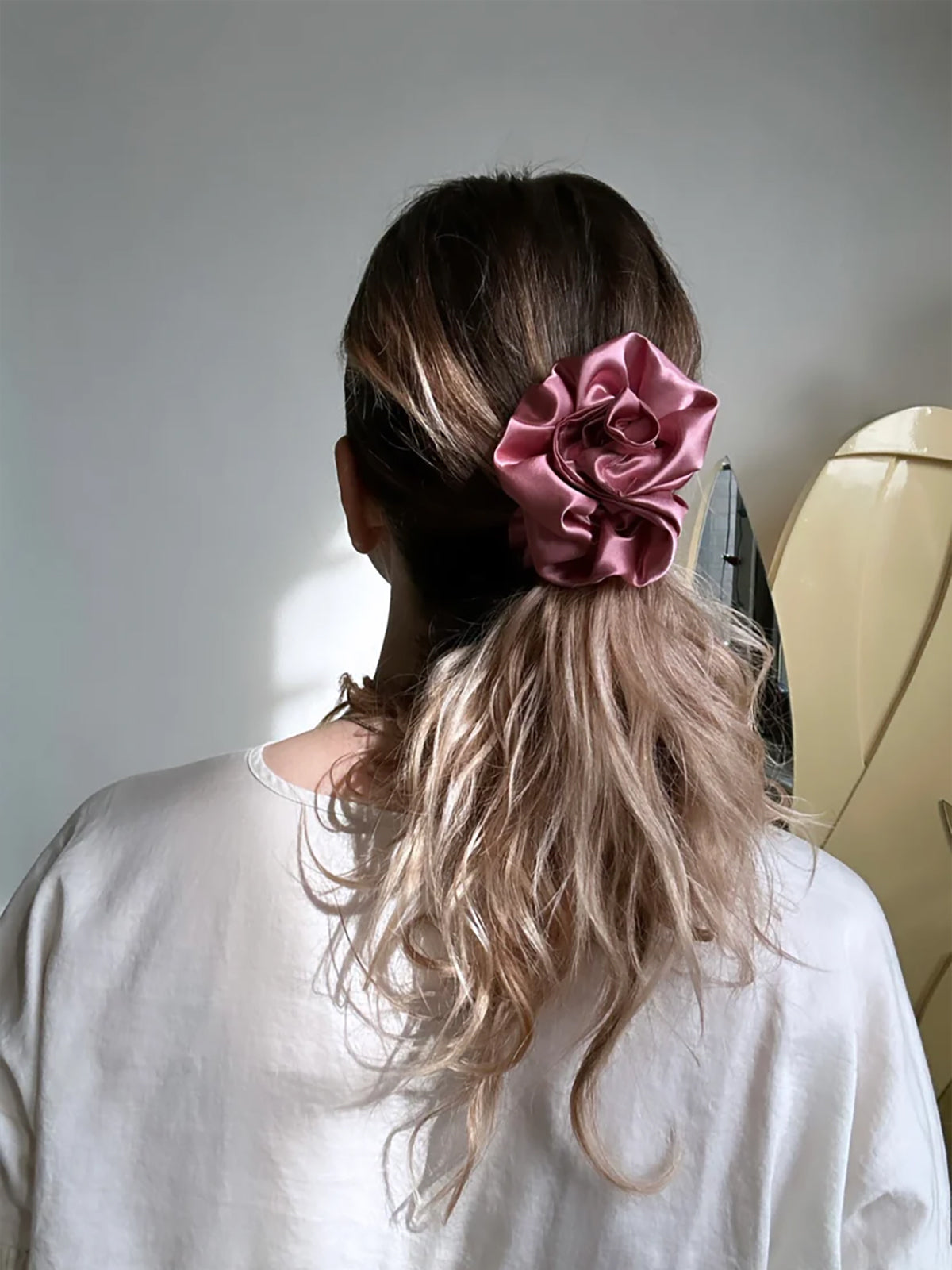 • Satin Rosette scrunchie, wear on your wrist as a corsage or in your hair for the perfect floral styling note.