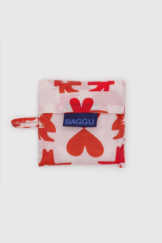 A smaller version of BAGGU's original reusable shopping bag. Perfect for your lunch, a six pack, extra shoes, or a trip to the corner store. A useful loop on its flat-pouch allows you to carry it on your keyring, so you have it when you need it.
