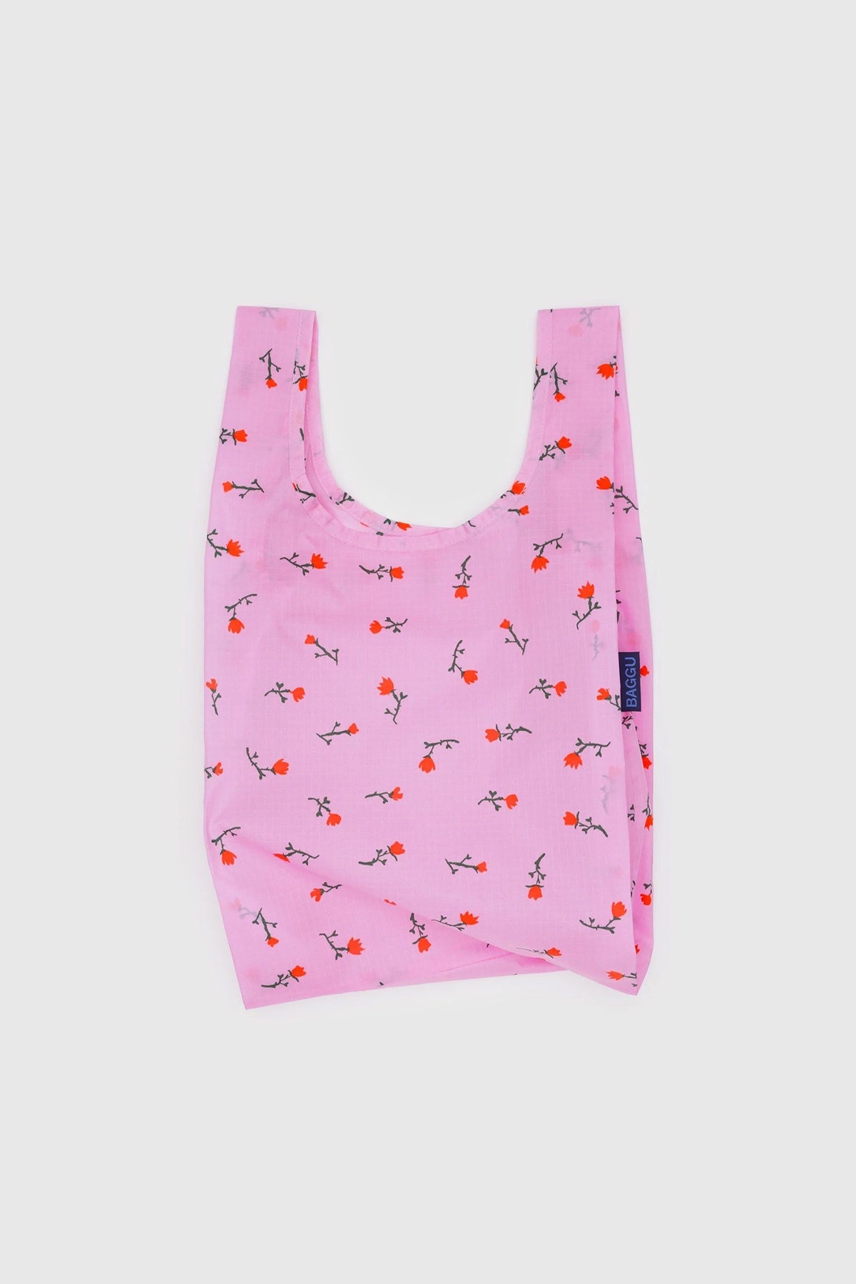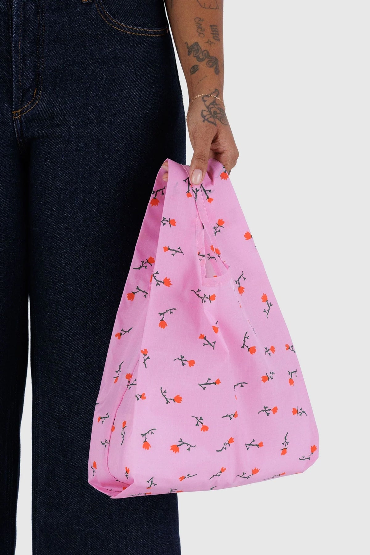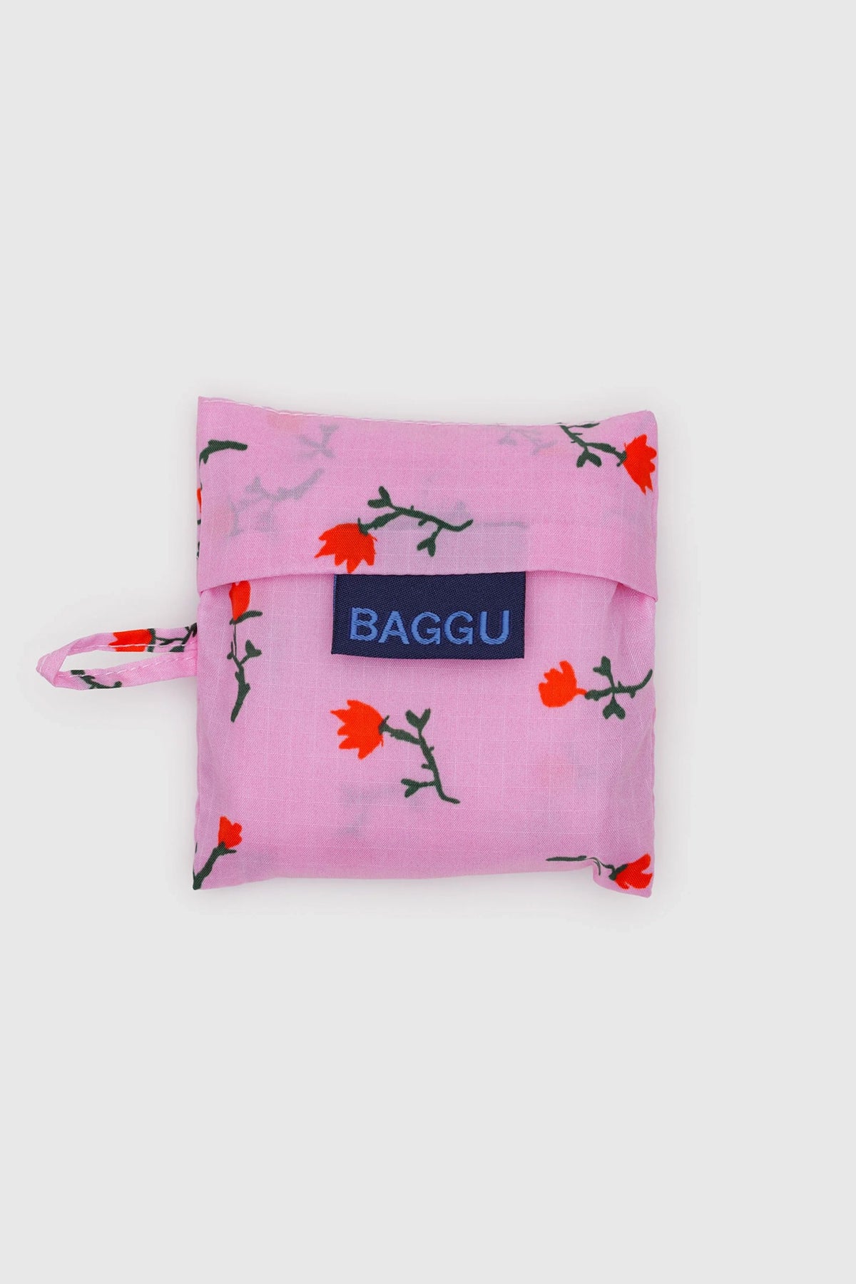 A smaller version of BAGGU's original reusable shopping bag. Perfect for your lunch, a six pack, extra shoes, or a trip to the corner store. A useful loop on its flat-pouch allows you to carry it on your keyring, so you have it when you need it.