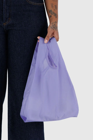 A smaller version of BAGGU's original reusable shopping bag. Perfect for your lunch, a six pack, extra shoes, or a trip to the corner store. A useful loop on its flat-pouch allows you to carry it on your keyring, so you have it when you need it.