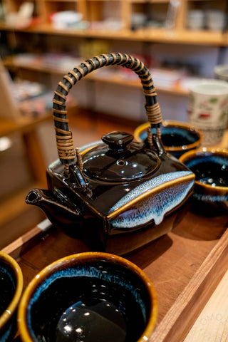 From Japanese tea house Jugetsudo, an autumnal hojicha for your fall pantry. A roasted green tea, hojicha has a toasted, nutty flavor similar to black tea. Notes of seasonal apples add a sweet taste to this caffeine-light treat. Make a cup for yourself before sleeping or brew a whole pot for the family; the beautiful canister contains 40g of loose leaf tea.