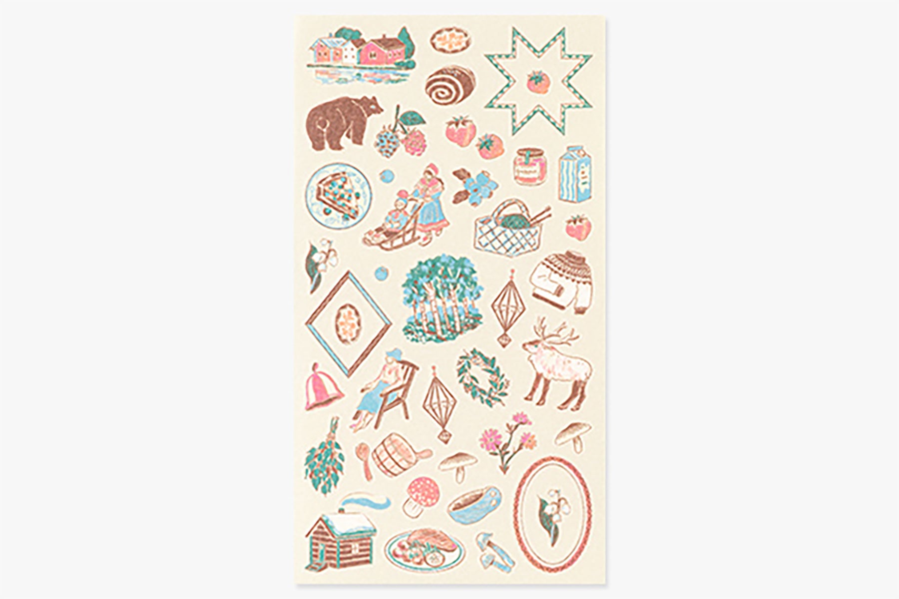 These Midori stickers are packed with large and small motifs that are easy to use for decorating your planners and notebooks. They have a story to tell, and feature framed designs featuring motifs unique to Finland and traditional patterns, allowing you to feel like you're traveling while decorating.
