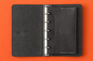A convenient card-size case that fits seamlessly into the Mini 5 size ring leather binder. This leather card case allows you to carry important business cards or credit cards with you at any time.
