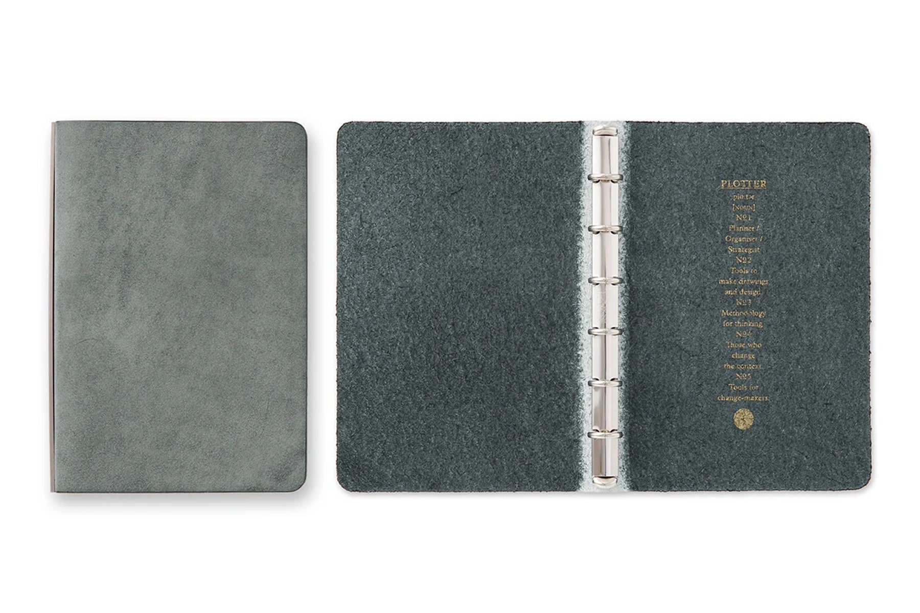 This is the A5 Size of PLOTTER's 6-Ring Leather Binder in Shiranami leather. It pairs with compatible A5 size notebook refills and accessories to expand your creativity, inspire new ideas, and envision the future.
