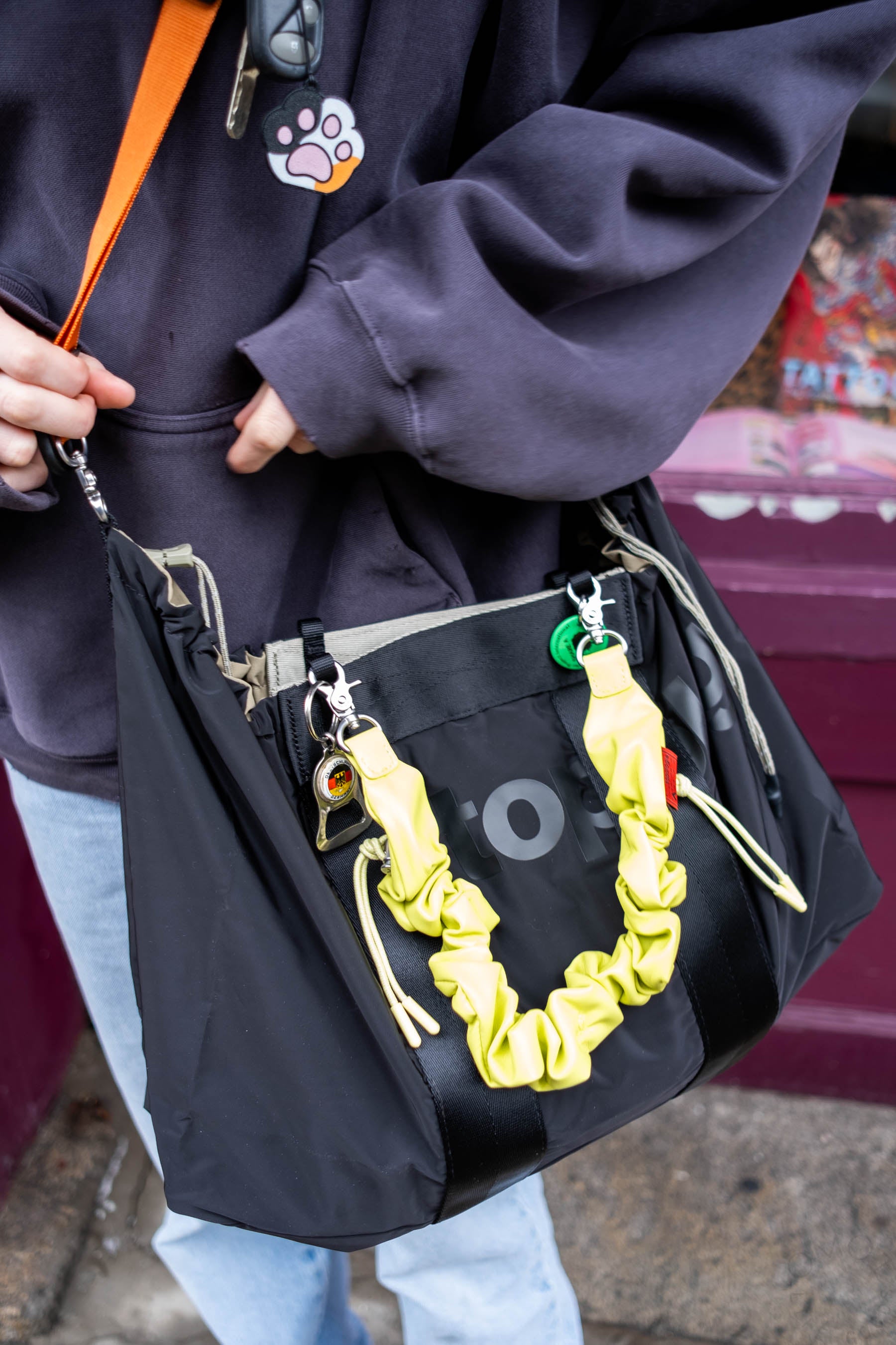 - Side drawstrings for adjusting the bag's shape