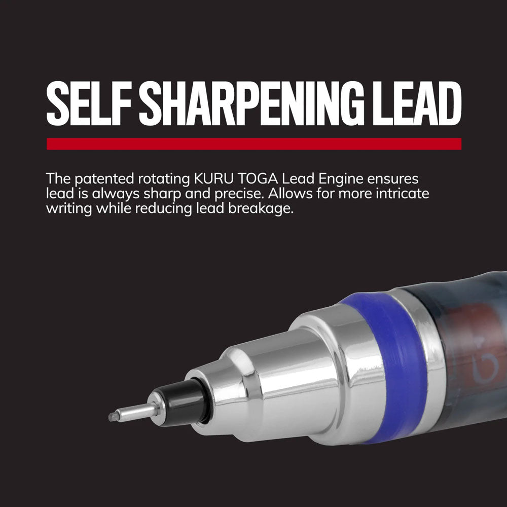 Say goodbye to uneven lead! The Kuru Toga Mechanical Pencil features a self-sharpening, rotating mechanism that keeps the lead tip at a continuous slanted angle for neat, consistent handwriting. This means that even as you use the mechanical pencil, the lead tip will remain at a perfectly sharpened 0.3mm.