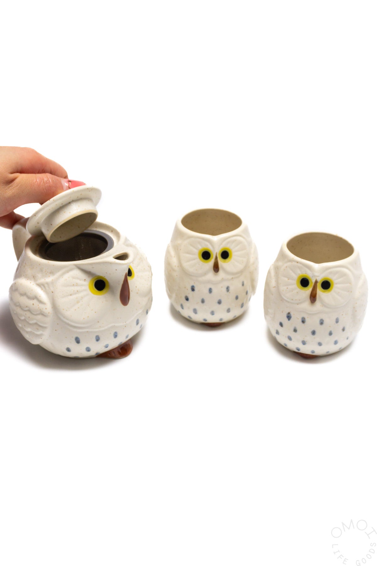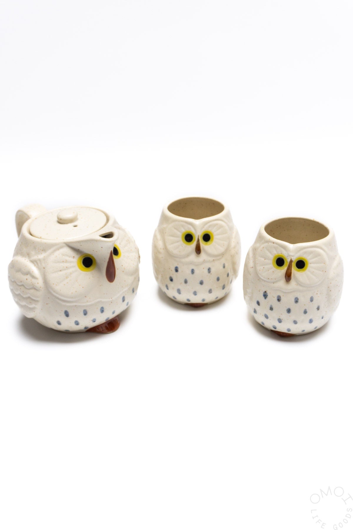 White Owl 3-Piece Tea Set by Yuki Fukuro.